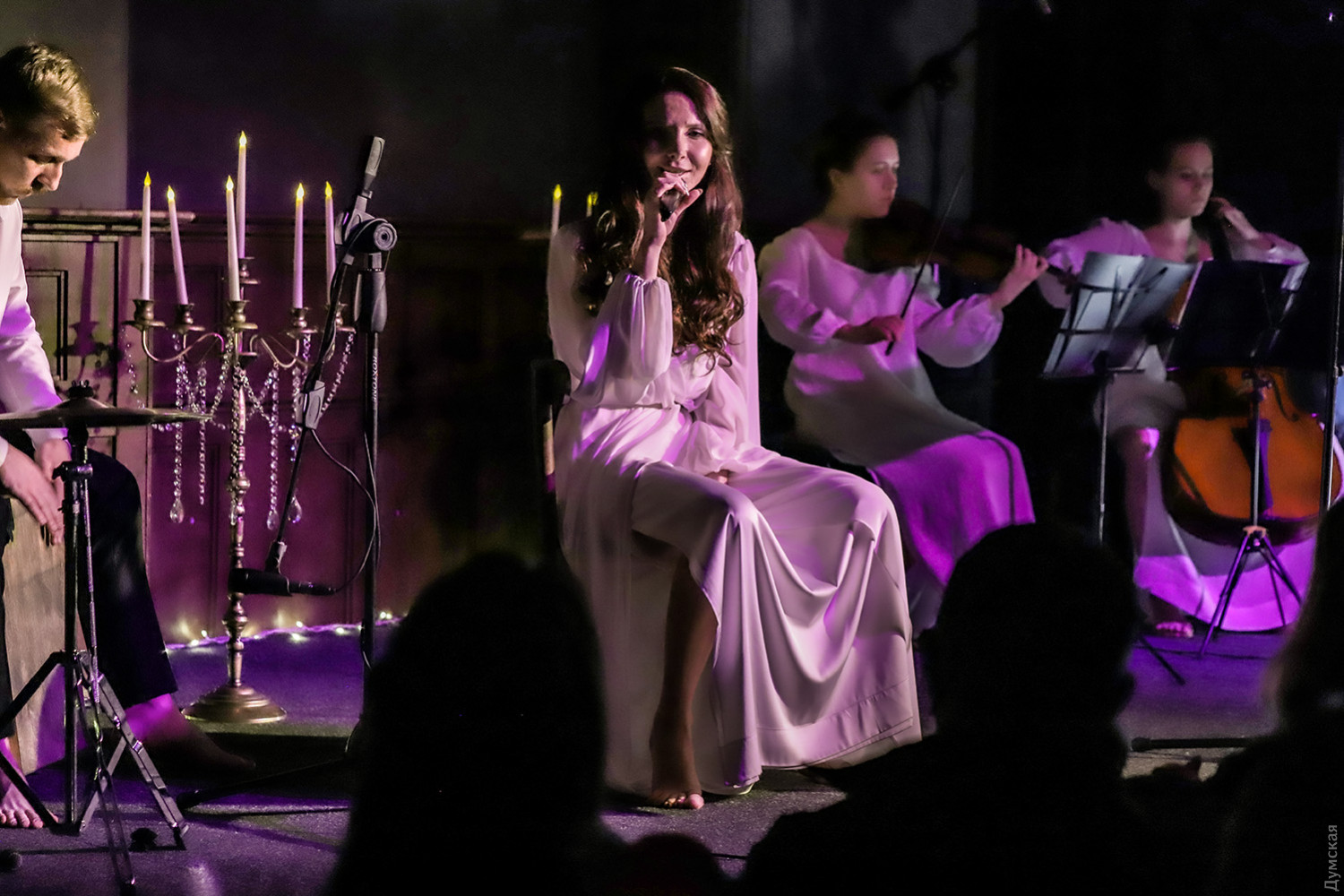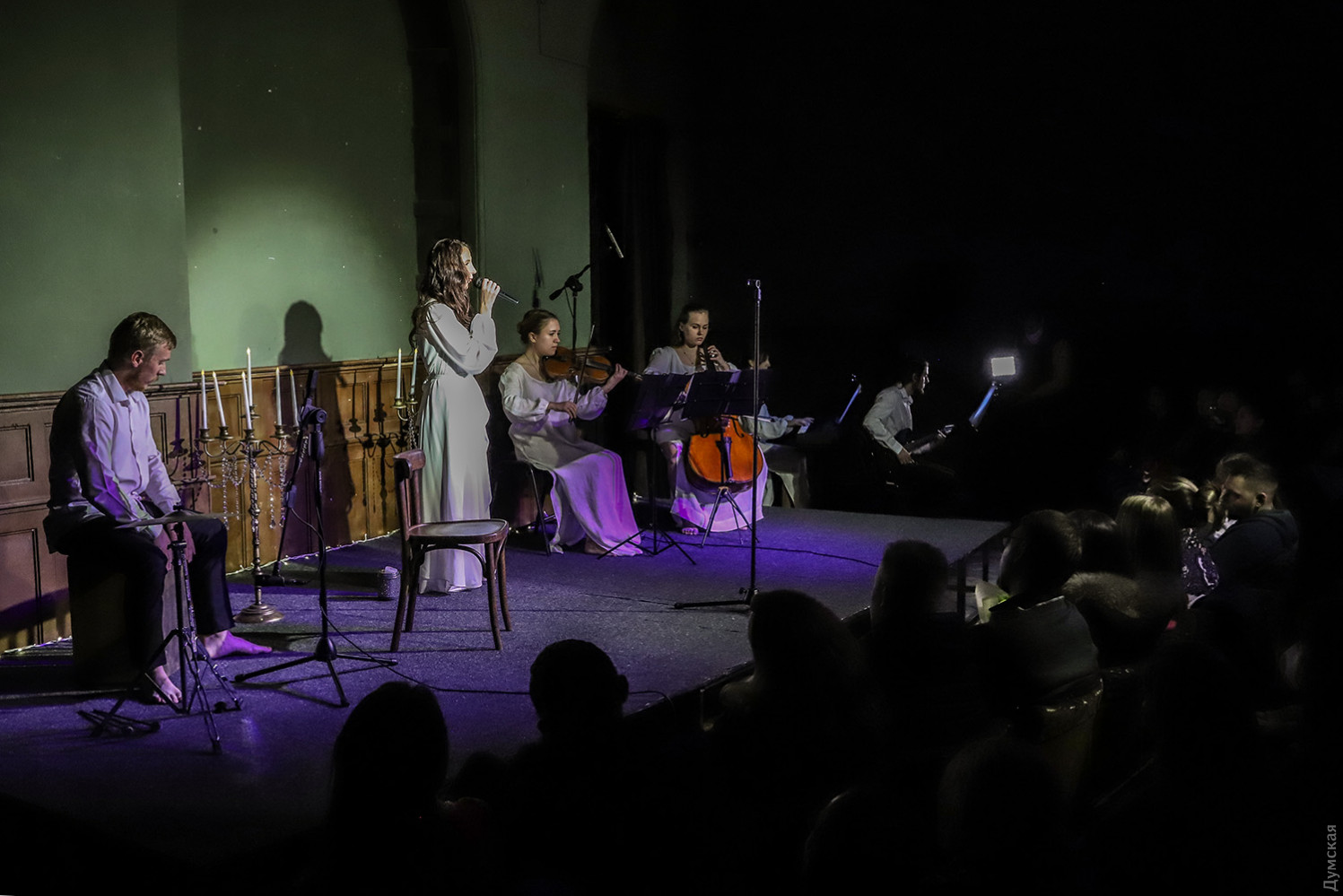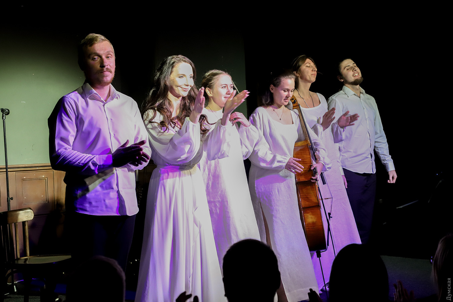 «Научи меня искусству маленьких шагов». Одесский Театр «На Чайной» поставил спектакль о благодарности Всевышнему«За все Тебя благодарю…» — так называется музыкальный моноспектакль актрисы Театра «На Чайной» Фаины Мартыновой. Если вы достаточно романтичны, в меру религиозны и любите поэзию, непременно посетите это представление. Фаина — девушка талантливая и красивая, актриса хорошая и режиссер, подающий надежды. Она сочиняет лирические стихи и песни, а поскольку во всем стремится достигать уровня высокого профессионализма, привлекла в свой авторский проект дипломированных музыкантов. Молодой композитор Юлия Закерничная, видеорежиссер Татьяна Камелевская, скрипачка Елена Волкова, виолончелистка Алена Коршунова, гитарист Владислав Узун и ударник Юрий Данчук помогли Фаине придать каким-то очень личным душевным переживаниям форму спектакля. За любое испытание героиня приносит благодарность Всевышнему и просит его научить ее искусству маленьких шагов. Смирение помогает справиться с болью любовных разочарований и ожидать полного счастья в будущем. Художник по костюмам придумала для всех участников представления белые облачения как достойную декларацию чистоты помыслов. Когда Фаине было десять, она устраивала домашние концерты для бабушки, воображала себя эстрадной звездой, а вместо микрофона брала в руки… дезодорант. Самое замечательное в этой истории – неизменно восторженный прием со стороны бабушки. «Сегодня, когда у меня есть спектакль, в котором звучат 13 авторских песен, разложенные на пять инструментов, я оглядываюсь назад, возвращаюсь в прошлое и кланяюсь своей мудрой бабушке, которая, конечно же, понимала, что я на ходу выдумываю и пытаюсь выдать что-то, похожее на песню. Но ни разу бабушка не показала, что понимает это, и вместо смеха или смущения, она только восхищалась, поддерживала, и этим вселяла в меня веру в себя и в Мечту. С 14-ти лет я разговариваю с ней только в мыслях, а взрослая душа моя нередко вспоминает то состояние в моменты безусловной бабушкиной любви и поддержки», — говорит со сцены актриса. Стоит этот метод доброжелательного воспитания взять на заметку и другим бабушкам и мамам, ведь удача на актерском поприще приходит к уверенным в себе людям! К счастью, сегодня Фаина Мартынова интересна далеко не только близким родственникам, и поклонники ждут от нее новых стихов, песен, ролей и спектаклей. Автор — Ирэн Адлер Фото Владимира Андреева СМЕРТЬ РОСІЙСЬКИМ ОКУПАНТАМ! Помітили помилку? Виділяйте слова з помилкою та натискайте control-enter Новини по цій темі: 2 листопада 2025: «Амінь, і поїхали»: одеситам показали портрети відьом та козака-характерника (фото) 22 вересня 2025: Артист не може бути поза політикою: Dakh Daughters в Одесі розповіли про відьом, важкі міста і в який час краще жити 19 вересня 2025: Йому довірять робити раму для Караваджо: одеситам показали виставку литовського музейника |