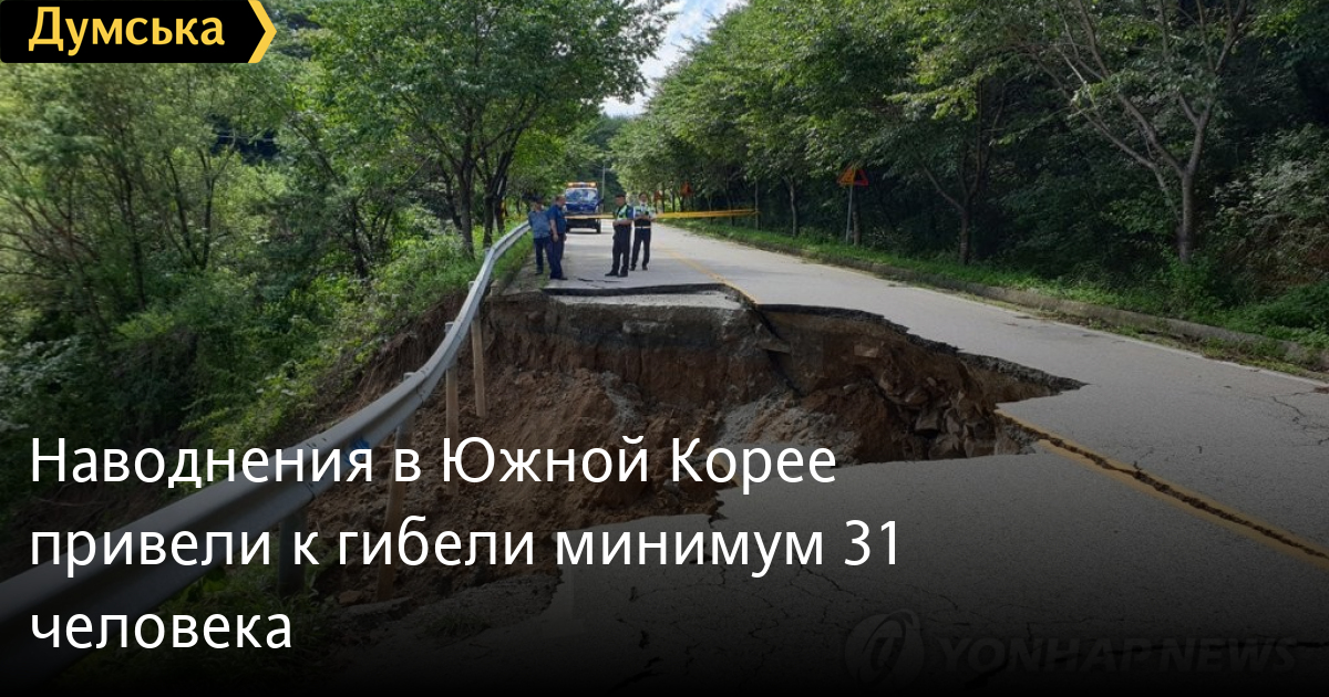 Сильные ливни, которые обрушились на Южную Корею привели к наводнениям и оползням. В результате разгула стихии минимум 31 человек погиб, еще 11 считаются пропавшими без вести. Как сообщают мировые СМИ, за минувшие выходные в городе Кванджу и в провинциях Южная и Северная Чолла погибли 13 человек. Порядка семи тысяч людей в 11 городах и провинциях вынуждены были покинуть свои дома из-за угрозы их подтопления и обрушения. Стихия повредила и разрушила порядка 14 тыс. жилых и общественных зданий, а также около 4,3 тыс. мостов и участков автомобильных дорог. Под водой оказались почти 25 тыс. гектаров сельскохозяйственных угодий. Местные синоптики прогнозируют усиление дождей, в связи с тем, что к Корейскому полуострову приближается тайфун «Чанми». На территории Южной Кореи ожидается выпадение от 80 до 250 мм осадков. СМЕРТЬ РОССИЙСКИМ ОККУПАНТАМ! Заметили ошибку? Выделяйте слова с ошибкой и нажимайте control-enter |