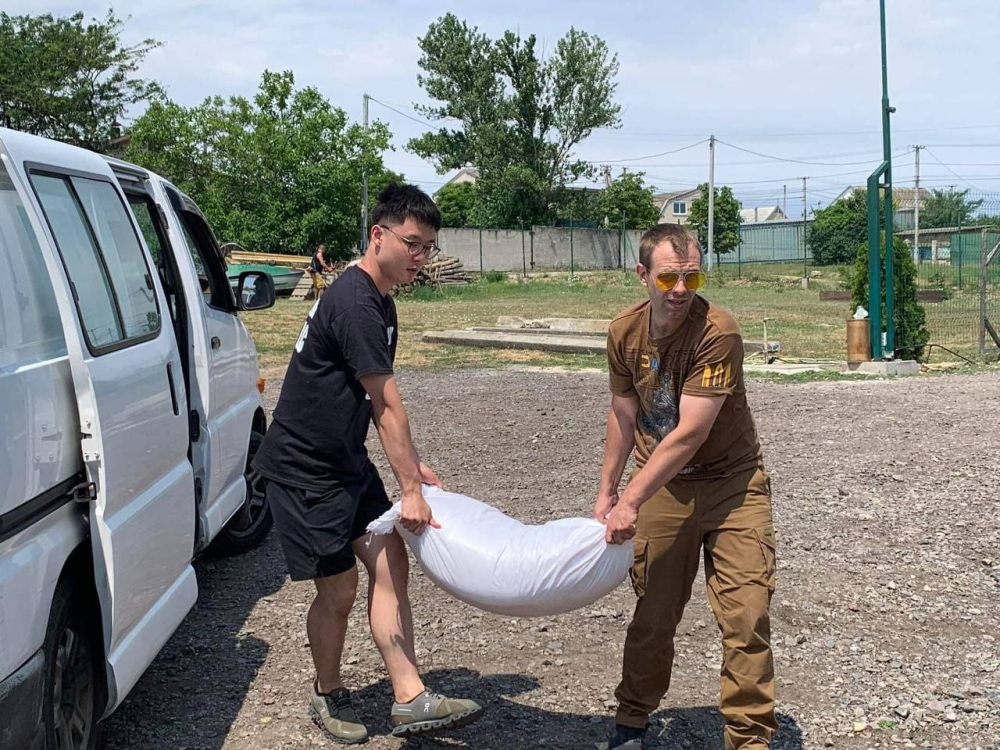 На блокпостах, бачачи японські паспорти, дивуються, але пропускають. Масато каже, що тільки один раз оглядали телефон. Фотографії, відео, кому дзвонив, із ким листувався. - Ми були десь за п'ять кілометрів від «нуля», — згадує Юкі. — Відвозили гуманітарку. Дуже голосно! Відчувається вібрація від прильотів. На стінах будинків брудна лінія — це рівень води, що зійшла після вибуху дамби Каховського водосховища. Привезли генератор, речі, продуктові набори. І звичайно, ми приїхали підтримати морально людей. А це священнослужителі, волонтери, їм дуже важко, вони постійно в небезпеці й перебувають в ізоляції. І ми хотіли показати, що з ними!