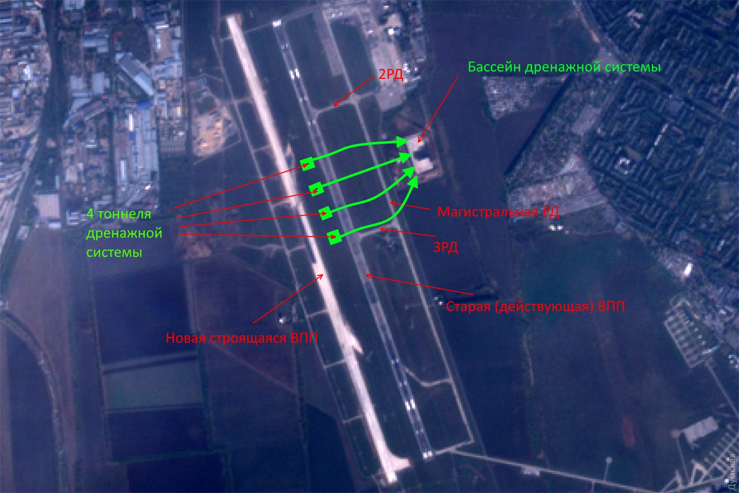 Коммуникации для новой взлетки одесского аэропорта проложат под старой полосой: рейсы при этом отменять не будутСтроительство новой взлетно-посадочной полосы международного аэропорта «Одесса» продолжается не только над, но и под землей. Нет, это не метро и даже не «гиперлуп». Под землей планируется провести трубы большого диаметра для отведения сточных вод ливневой канализации ВПП. Ранее «Думская» писала о том, что весной прошлого года в трехстах метрах восточнее старой взлетки начались загадочные строительные работы. Никто не знал, что это за объект, но мы выяснили, что здесь будет огромный бассейн для сточных вод ливневой канализации. В ближайшие два месяца к этому бассейну предстоит подвести четыре трубы большого диаметра. Они пройдут под старой взлетно-посадочной полосой и магистральной рулежной дорожкой. Трудность заключается в том, что аэропорт закрывать нельзя, полеты должны продолжаться, а это значит, что надо делать подземное горизонтальное сверление. Длина каждой трубы составит около 500 метров. Сверление будут проводить на глубине 3 м, но сначала будут сделаны четыре выемки грунта – 10 на 10 метров, глубиной более 3 м. Из этих углублений и начнется проходка. Все подземные выработки сделают на участке между РД2 и РД3 (см. рисунок). При этом магистральная рулежная дорожка будет перекрыта, а для самолетов и строительной техники будет организована специальная схема движения. СМЕРТЬ РОСІЙСЬКИМ ОКУПАНТАМ! Помітили помилку? Виділяйте слова з помилкою та натискайте control-enter Новини по цій темі: 18 квітня 2024: Ексмер Одеси Олексій Костусєв ховається від слідства в елітному районі Лондона: стала відома його адреса 29 березня 2024: Справа про заволодіння аеропортом "Одеса": ексвіцемер Орловський відбувся умовним терміном 28 лютого 2024: Відкрити українське небо: чим Бориспіль відрізняється від Бен-Гуріона і що потрібно зробити для відновлення авіасполучення? 23 лютого 2024: Костусєв ховається у Лондоні: за крадіжку одеського аеропорту його судитимуть заочно 11 грудня 2023: Ексмера Одеси Костусєва заочно постановили ув`язнити в СІЗО |