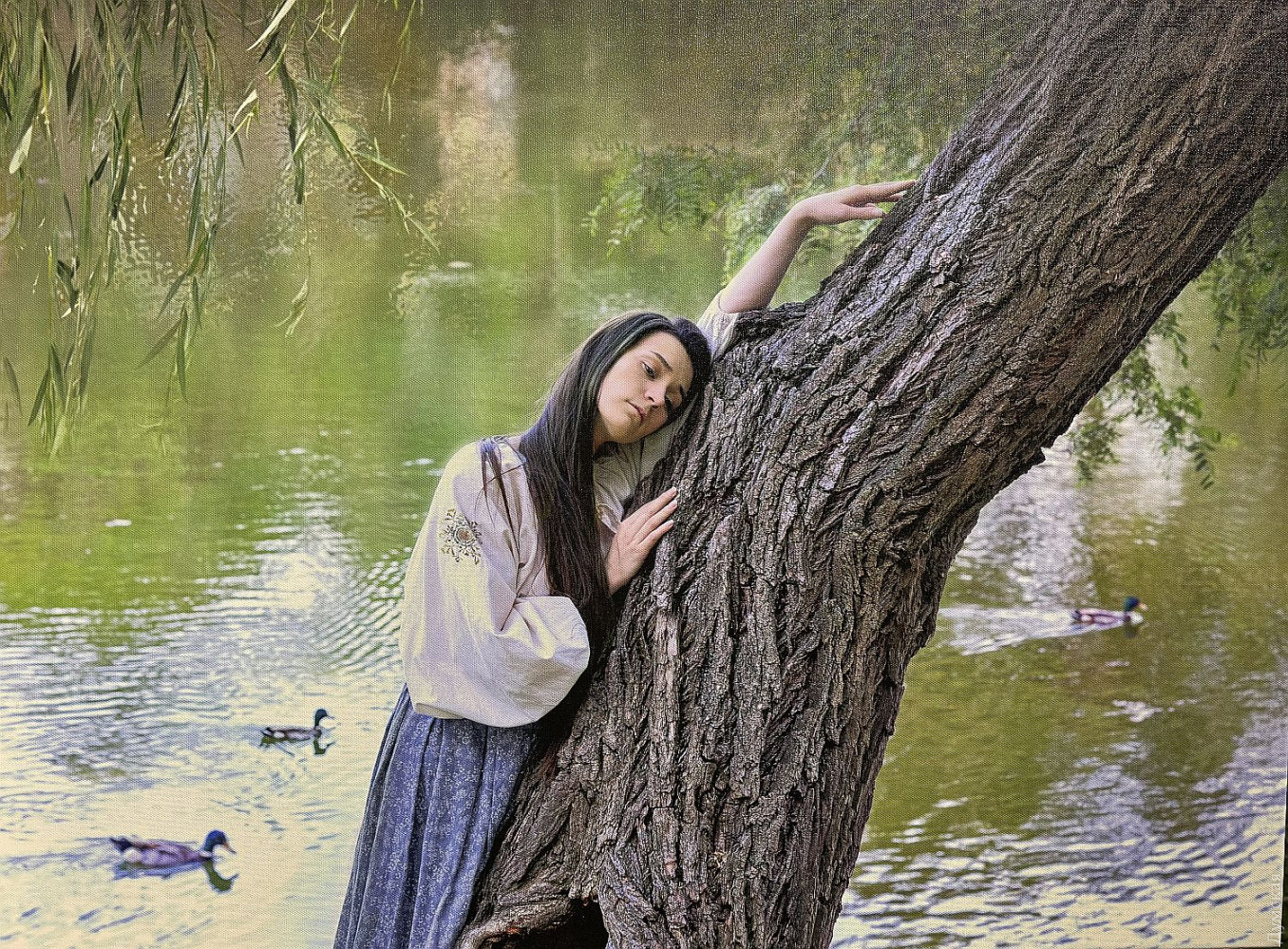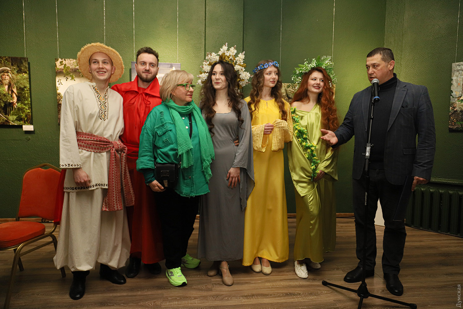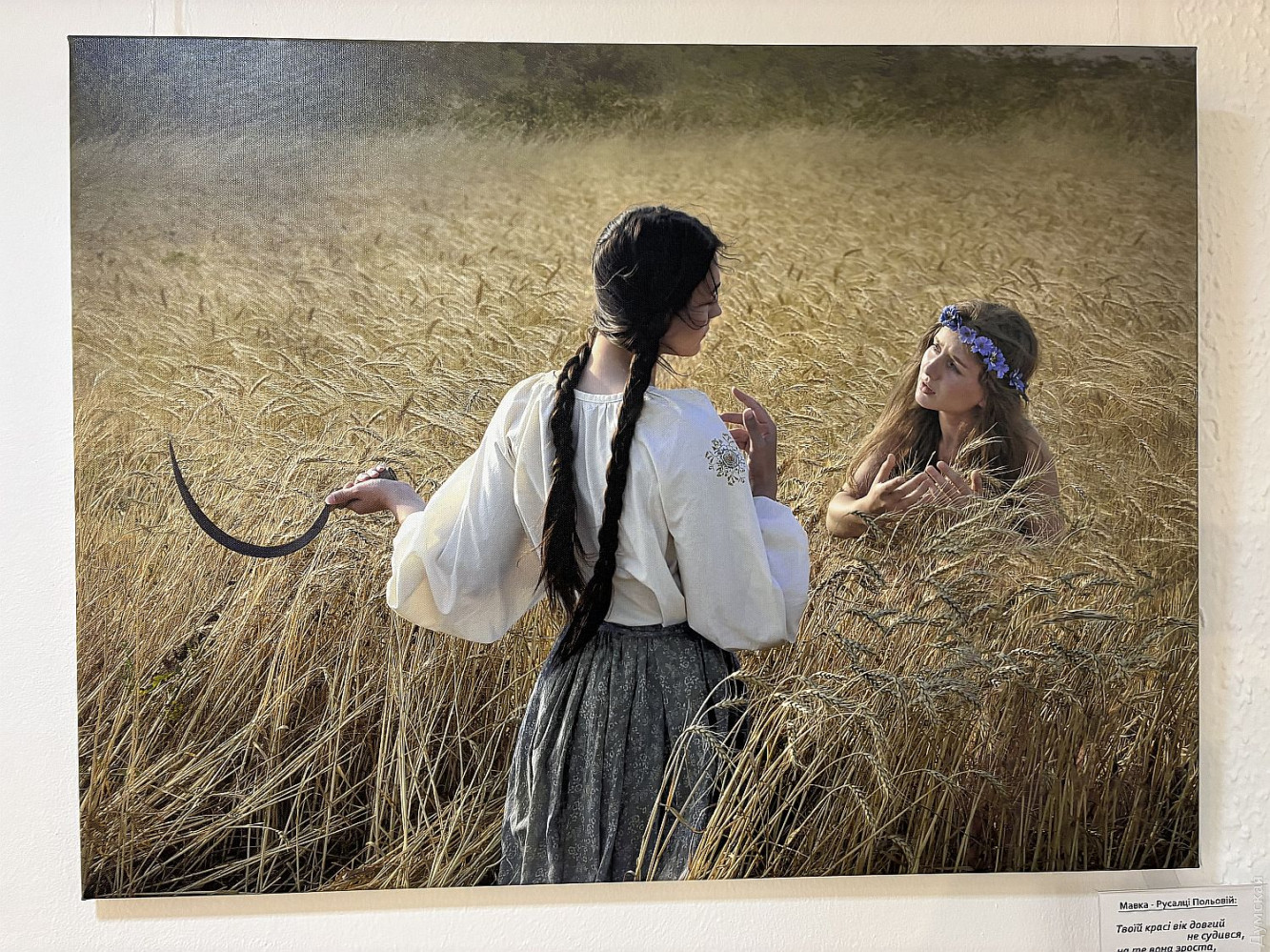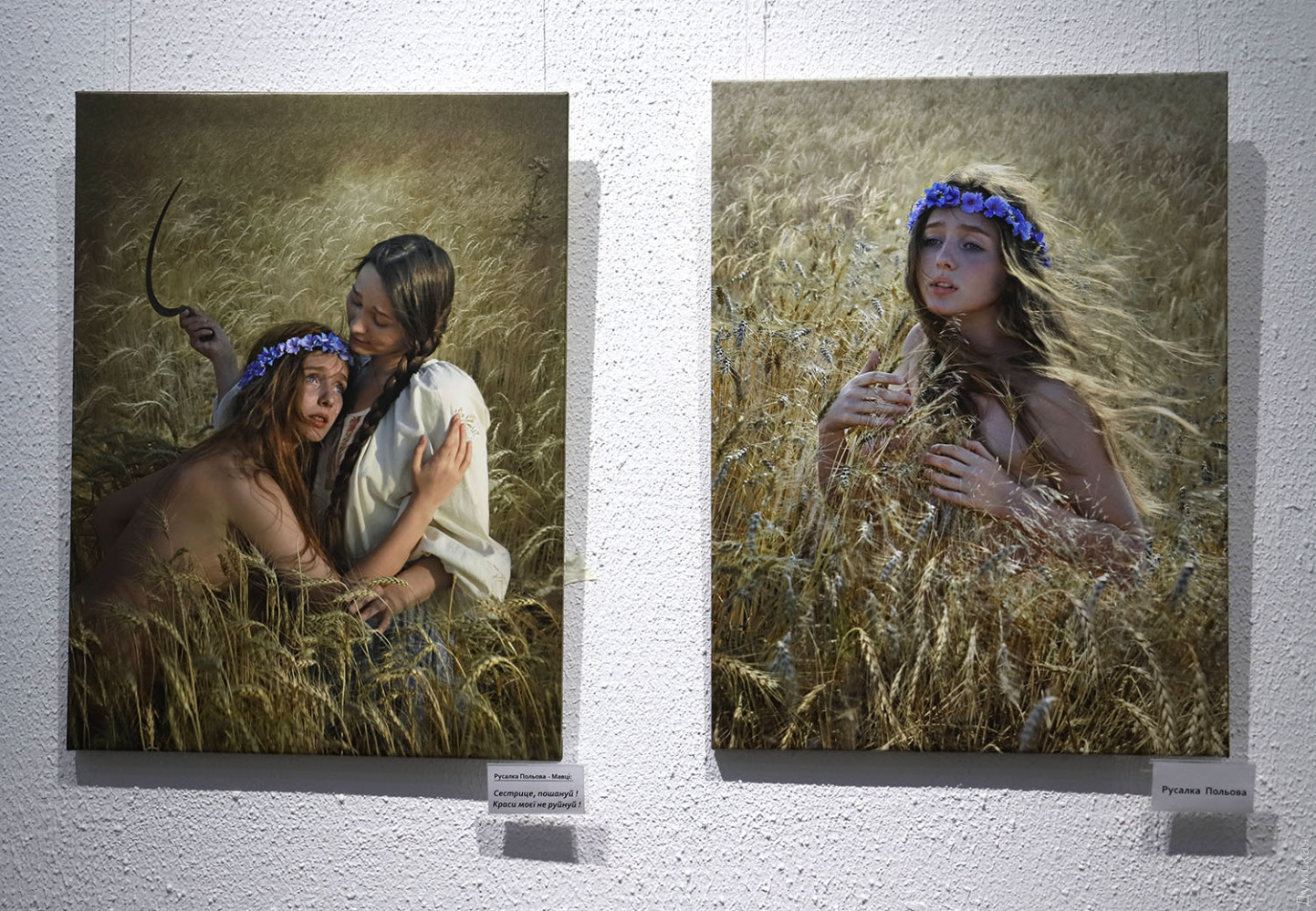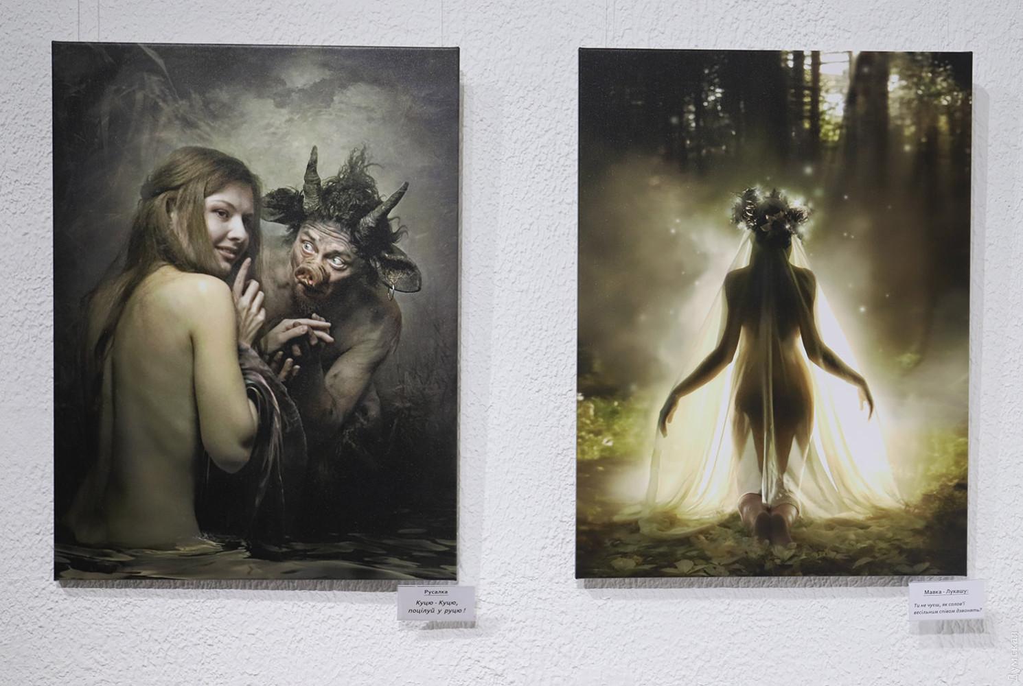 Фотопроект Елены Мартынюк «Лесная: свобода быть собой» до 29 марта работает в Международном культурном центре Union в рамках культурной инициативы Odesa-ID. Это невероятно красивое и целостное художественное высказывание о свободе как внутреннем выборе, о праве оставаться живым в мире, постоянно искушающем компромиссами. Заслуженная художница Международной федерации фотоискусства (FIAP), призер, победитель, дипломант и лауреат многочисленных международных и отечественных выставок Елена Мартынюк, обращаясь к философскому ядру драмы «Лесная песня» Леси Украинки, словно о себе говорит. Ведь она с начала полномасштабного вторжения покинула комфортную московскую студию и вернулась в родной город, к матери и сыну. Не смогла делать парадные портреты тех, кто хочет «спасать» Одессу. Проект реализован совместно с Одесским академическим украинским музыкально-драматическим театром имени Василия Василько. Актеров для участия в проекте привлекла Юлия Пивоварова, директор-художественный руководитель театра, а куратором проекта стала советник Одесского городского головы на общественных началах Елена Павлова. Празднование 155-летия со дня рождения Леси Украинки продолжилось не лишенным мистики, как, впрочем, и вся «Лесная песня», художественным событием. «Наши прекрасные актеры не боялись озер, фонтанов, жаб, диких собак, а доверились художнице, — говорит завлит «васильковцев» Светлана Бондарь. — Гримеры, костюмеры – все были задействованы, ведь создавали драму-феерию! И я видела, как зрители узнавали в этих фотокартинах что-то свое». Елена Мартынюк рассказала, что херсонские жабы после аварии на Каховском водохранилище приплыли по морю, натерпелись лиха, чего ж их бояться. Наоборот, чуткие одесситы спасли их, доставили в Ботанический сад Одесского национального университета имени И. И. Мечникова, где они обитают в фонтане. Этот фонтан во время съемок превратился в пруд, куда бесстрашно погружались Русалка (Ульяна Самолюк) и Тот, кто плотины рвет (Сергей Корнейко). А вот кого действительно испугались, так это черного пса, который неожиданно присоединился к съемочной группе в Дюковском парке. Ведь известно, что в таком обличье в мир людей может приходить нечистый, да и герой «Лесной песни» Лукаш превращался в волка-оборотня. Мавка (Тамара Лукаш) как раз печалилась на могиле дядьки Лева (народный артист Украины Игорь Геращенко именно в этом кадре не был задействован), сюжет понуждал к опасениям. Но все обошлось. Был в проекте и самый настоящий волк, которого нашли в зоопарке и отсняли без проблем, хищник там родился и к людям привык. Красавец Лукаш (Ярослав Бабич) искренне обрадовался, когда во время позирования к нему прилетела стрекоза, к Мавке слетались бабочки. А еще к актерам постоянно присоединялись коты. «Где уж точно была мистика, так это в кадрах с Русалкой Полевой, — признается Елена Мартынюк. – Когда мы спохватились, на полях не осталось спелых колосьев, одна стерня. Насилу нашли клочок поля за Нерубайским, сплели для Анастасии Лукьяновой веночек из васильков, посадили ее в рожь и отсняли. На следующий день и эти колосья исчезли. Повезло». Съемки длились с весны до начала зимы, и силы природы ощутимо стремились к художественному взаимодействию, приобщаясь к творческому процессу. Видимо, иначе и быть не могло с этим сюжетом.