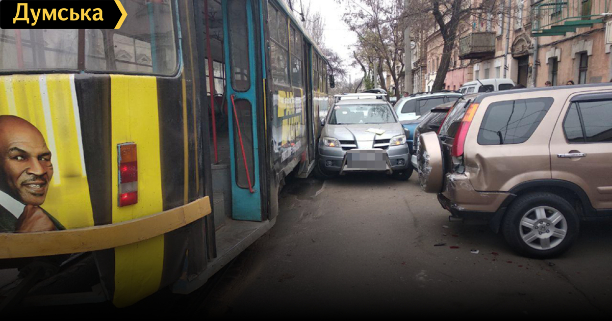 Четыре легковых машины и трамвай получили повреждения в результате сегодняшнего ДТП на Старопортофранковской улице. По словам очевидцев, в районе дома №7 водитель одной из легковушек не рассчитал, выполняя маневр, врезался в трамвай и припаркованные авто. В пресс-службе патрульной полиции Одесской области сообщили, что из людей никто не пострадал. На месте правоохранители зафиксировали произошедшее. СМЕРТЬ РОСІЙСЬКИМ ОКУПАНТАМ! Помітили помилку? Виділяйте слова з помилкою та натискайте control-enter Новини по цій темі: 30 серпня 2025: Машина вилетіла в кювет: мер Рені потрапив в аварію, його мати загинула, а маленький син у лікарні (фото) 18 серпня 2025: Троє загинули, один у лікарні: на трасі Одеса-Рені водій Mercedes не пропустив фуру (фото) 28 липня 2025: П'яний на "Ягуарі" або гіпертонік? Звільнений топ-посадовець одеської поліції хоче повернутися на службу 2 квітня 2025: В Одесі водій BMW спровокував аварію, в якій постраждали п`ятеро людей, і втік (фото, відео) |