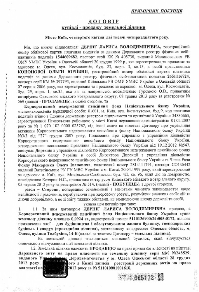 Негосударственный пенсионный фонд Нацбанка Украины судится с одесскими мошенникамиКорпоративный негосударственный пенсионный фонд Национального банка Украины (КНПФ НБУ) судится с одесскими мошенниками, которые пытаются присвоить принадлежащие фонду объекты недвижимости. Как поясняют в организации, спорные объекты ранее были проданы фонду этими же мошенниками через подставных лиц, а теперь они продолжают пользоваться помещениями с начала 2015 года без всякой оплаты за аренду. Как рассказал директор КНПФ НБУ Олег Куринной, за аферой стоит одесской бизнесмен Сергей Кононов — владелец скандальной компании «Альянс», «прославившейся» своими проблемными недостроями. По словам Олега Куринного, чтобы «вытащить» деньги из пенсионного фонда и профинансировать свои бизнес-проекты, в 2010 году Кононов вступил в сговор с предыдущим руководством пенсионного фонда: через подставных лиц организации продали принадлежащие бизнесмену-аферисту и его жене четыре объекта недвижимости (по ул. Гайдара, 30; ул. Толбухина, 14-Б; ул. Академика Вильямса, 50-а; Люстдорфская дорога, 125) и земельного участка, не представляющих для фонда коммерческого интереса. К афере тщательно готовились: изначально по фиктивной сделке Кононов передал помещения по заниженной стоимости подставным лицам, которые затем перепродали их КНПФ НБУ по высоким ценам. К примеру, «владелицей» одного из таких объектов по договору являлась дворник одного из одесских ЖЭКов Лариса Деринг, которая продала пенсионному фонду особняк площадью около 500 кв.м. с земельным участком более 900 кв.м. по адресу ул. Толбухина, 14-б. Сумма сделки — почти 14,5 млн. грн. Во время продажи всех помещений Сергей Кононов и его супруга Ольга Кононова выступали по доверенности представителями продавцов. На этом афера не закончилась — после сделки купли-продажи фонд передал объекты в аренду приближенным к Кононову компаниям — ООО «Первый банк недвижимости «Альянс», ООО «Риал Истейт Бизнес Групп». А после смены руководства пенсионного фонда арендаторы просто перестали платить по договору. В конце 2014 года новое руководство КНПФ НБУ приняло решение не продлевать договор аренды — коммерсантов попросили освободить помещения и погасить задолженность в размере 2,3 млн. грн. Однако арендаторы продолжают незаконно использовать объекты в своих коммерческих целях. «Мы подали иски в хозяйственный суд Одесской области, чтобы возместить долг по аренде и принудительно освободить незаконно занимаемые помещения. А они в свою очередь пытаются оспорить договора купли-продажи недвижимости фонда, чтобы забрать себе объекты через подставных лиц», — говорит директор КНПФ НБУ Олег Куринной. Так, 20 и 21 октября Малиновский и Киевский районные суды города Одесса будут рассматривать иски «миллионера» — дворника Ларисы Деринг: истец требует признать недействительным сделку по покупке фондом четырех объектов и земельного участка. «Если суд станет на сторону мошенников, то корпоративный НПФ НБУ и его вкладчики потеряют недвижимость и средства, за которые она была приобретена, а это более 20 миллионов гривен. Поэтому мы призываем суд действовать честно, прозрачно и беспристрастно», — говорит Куринной. СМЕРТЬ РОСІЙСЬКИМ ОКУПАНТАМ! Помітили помилку? Виділяйте слова з помилкою та натискайте control-enter |
