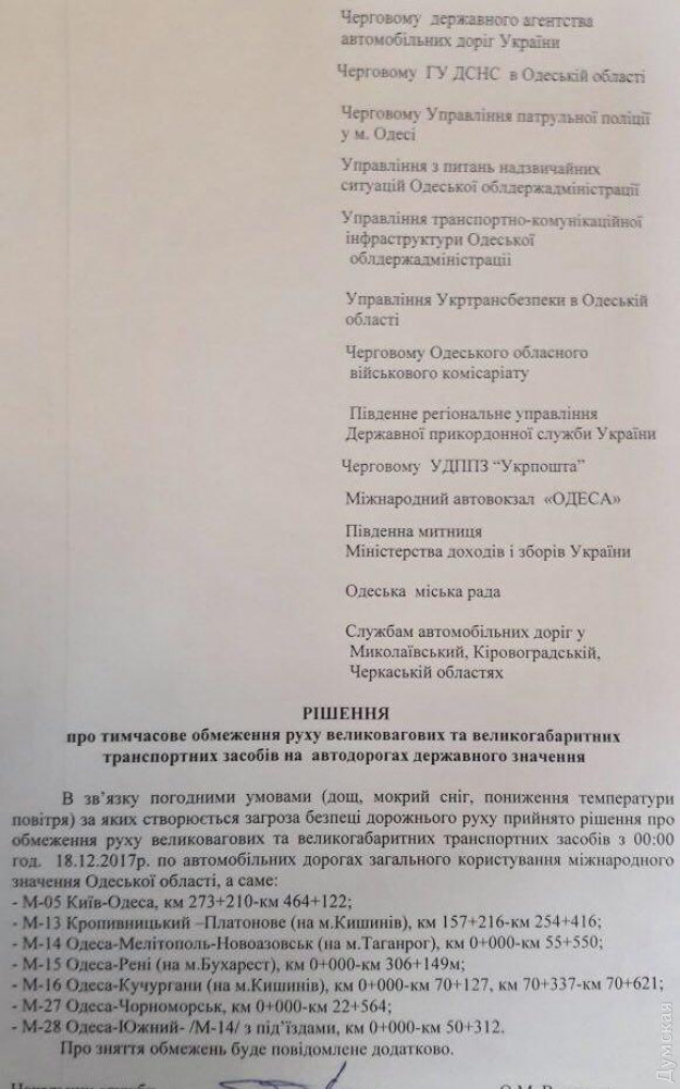 Автодороги международного значения в Одесской области временно закроют для большегрузного и крупногабаритного транспорта. Ограничение вступит в силу сегодня в полночь, сообщили в облгосадминистрации. Связано это с ухудшением погодных условий: ночью на территории области ожидаются сильные осадки, налипание мокрого снега, вьюга. Возможны порывы ветра до 15-20 метров в секунду. СМЕРТЬ РОСІЙСЬКИМ ОКУПАНТАМ! Помітили помилку? Виділяйте слова з помилкою та натискайте control-enter |