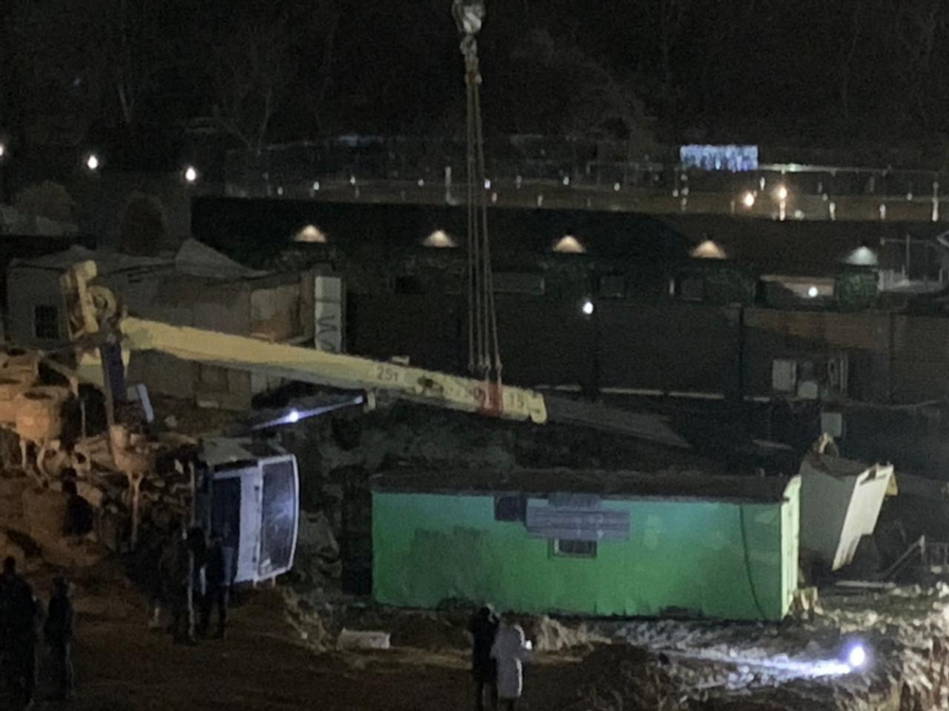 По состоянию на 23:30 12 января упавший кран удалось сдвинуть, и тело увезли со стройплощадки.