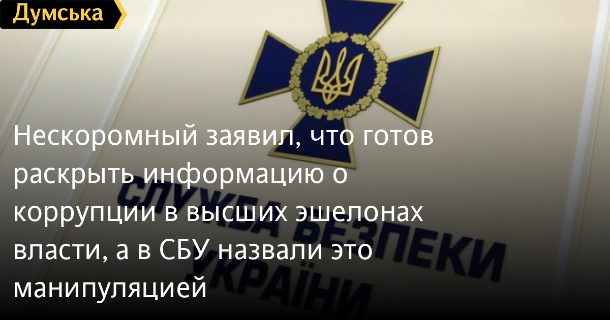 Нескоромный заявил, что готов раскрыть информацию о коррупции в высших эшелонах власти, а в СБУ назвали это манипуляциейБывший заместитель председателя СБУ Дмитрий Нескоромный, которого считают заказчиком несостоявшегося убийства бригадного генерала СБУ Андрея Наумова, выложил видеообращение, в котором рассказал, что располагает информацией о коррупции в высших эшелонах власти. Видео он опубликовал в своем Telegram, чтобы показать, что «жив, в безопасности и недосягаем для людей, которые хотели бы меня устранить». Нескоромный также заявил, что ведет переговоры с представителями европейских правоохранительных органов и готов предоставить европейцам информацию о «коррупции в высших эшелонах власти». «У меня есть данные по разворовыванию международной помощи, есть данные о выводе денег из госбанков: «Ошадбанка», «ПриватБанка», скоро будут данные по «Укрэксимбанку» и «Укргазбанку». Я также по прежнему готов предоставить украинскому обществу информацию о том, что происходит на самом деле в СБУ », — подчеркнул Нескоромный, который находится в розыске.