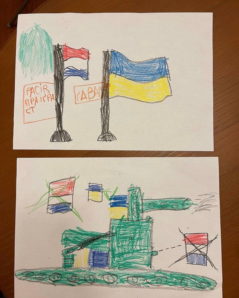 Пока украинские защитники дают отпор российским оккупантам, дети Украины поддерживают воинов патриотичными рисунками. Вместо привычных радуги и солнышка, на них - танки, храбрые украинские воины с оружием и флаг Украины. «Нет, мы не простим! Мы не простим такое детство нашим детям, не простим их слезы и страх. На этих картинках самая крепкая детская вера, надежда и мужество. Мы знаем, что победим врага, мы знаем, что наши воины лучшие. Мы обязательно победим. И точно уже совсем скоро на кадрах появится солнце, мирное небо и счастливая семья», — уверены в Нацполиции Украины. СМЕРТЬ РОСІЙСЬКИМ ОКУПАНТАМ! Помітили помилку? Виділяйте слова з помилкою та натискайте control-enter |