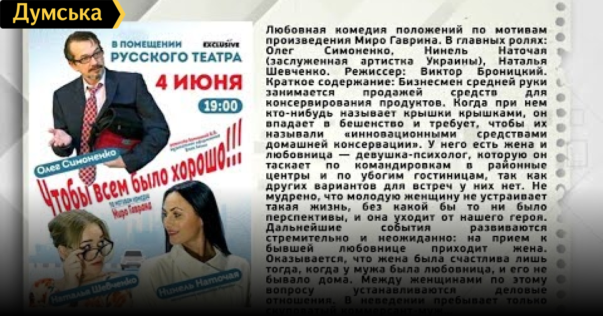 Премєра вистави «Мина Мазайло» - 17 і 18 січня, 17:00.