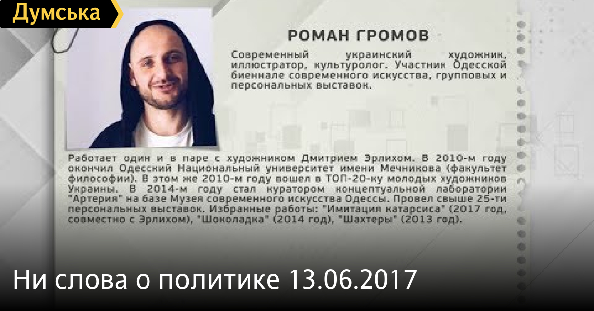 Тема: Новые проекты в музее современного искусства Одессы СМЕРТЬ РОССИЙСКИМ ОККУПАНТАМ! Заметили ошибку? Выделяйте слова с ошибкой и нажимайте control-enter Думская ТВ. Ни слова о политике (День на Думской):