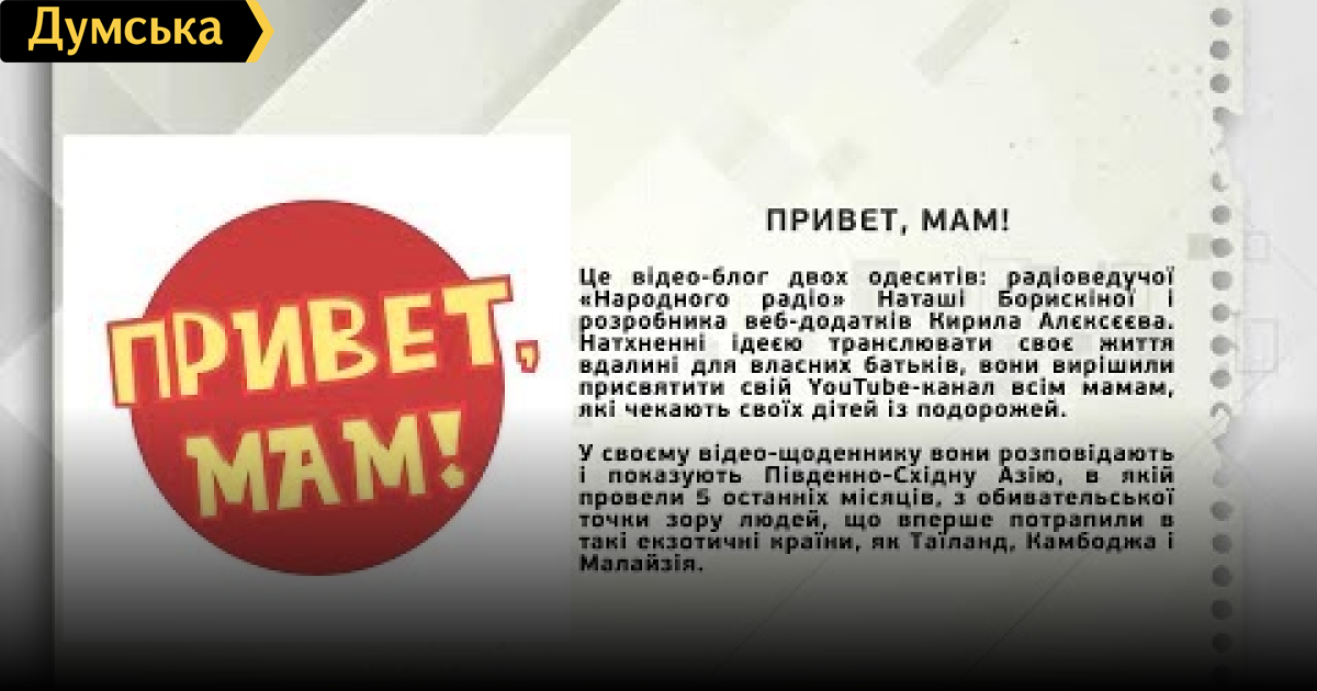 Наташа Борискіна – радиоведущая Кирил Алєксєєв web-разработчик СМЕРТЬ РОСІЙСЬКИМ ОКУПАНТАМ! Помітили помилку? Виділяйте слова з помилкою та натискайте control-enter Думская ТВ. Ни слова о политике (День на Думской):