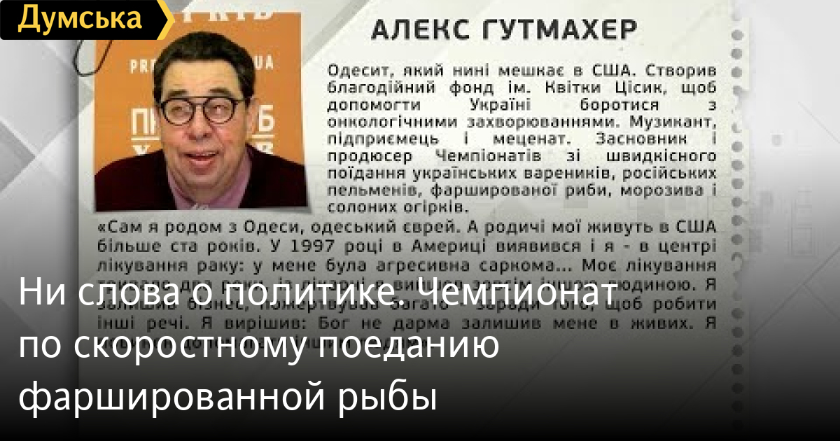 Ни слова о политике. Чемпионат по скоростному поеданию фаршированной рыбы
