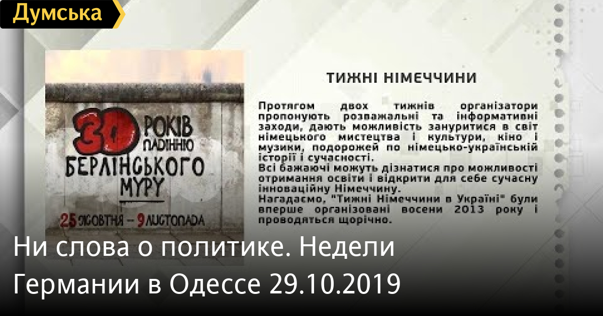 Ни слова о политике. Недели Германии в Одессе 29.10.2019