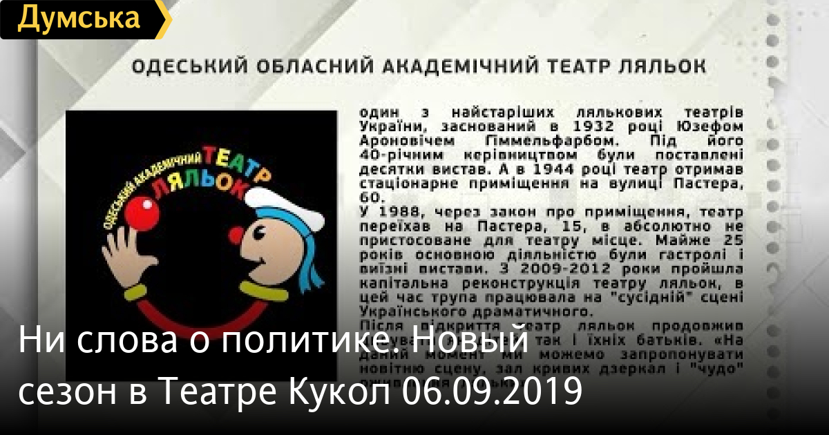 Ни слова о политике. Новый сезон в Театре Кукол 06.09.2019
