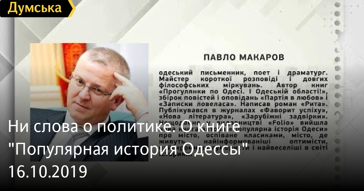 Ни слова о политике. О книге «Популярная история Одессы» 16.10.2019