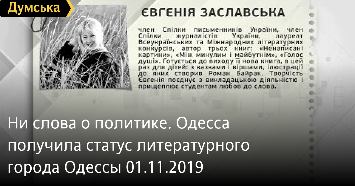 Ни слова о политике. Одесса получила статус литературного города Одессы 01.11.2019