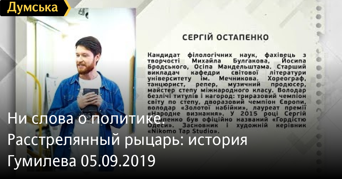 Ни слова о политике. Расстрелянный рыцарь: история Гумилева 05.09.2019