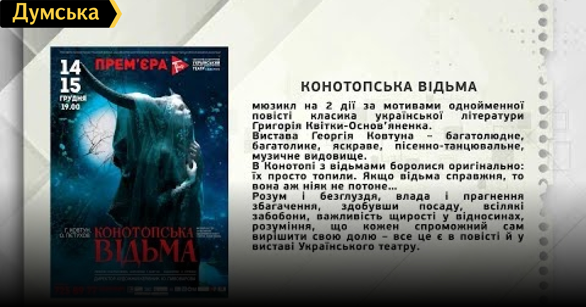 ТЕМА: ПРЕМ’ЄРА ВИСТАВИ “КОНОТОПСЬКА ВІДЬМА»
