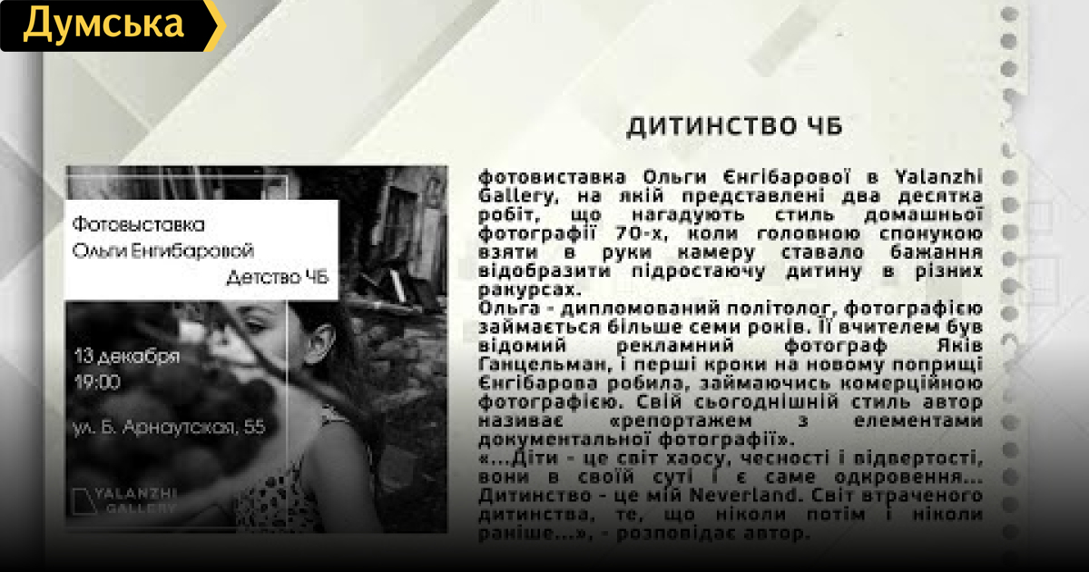 ТЕМА: ФОТОВИСТАВКА ОЛЬГИ ЄНГІБАРОВОЇ «ДИТИНСТВО ЧБ»
