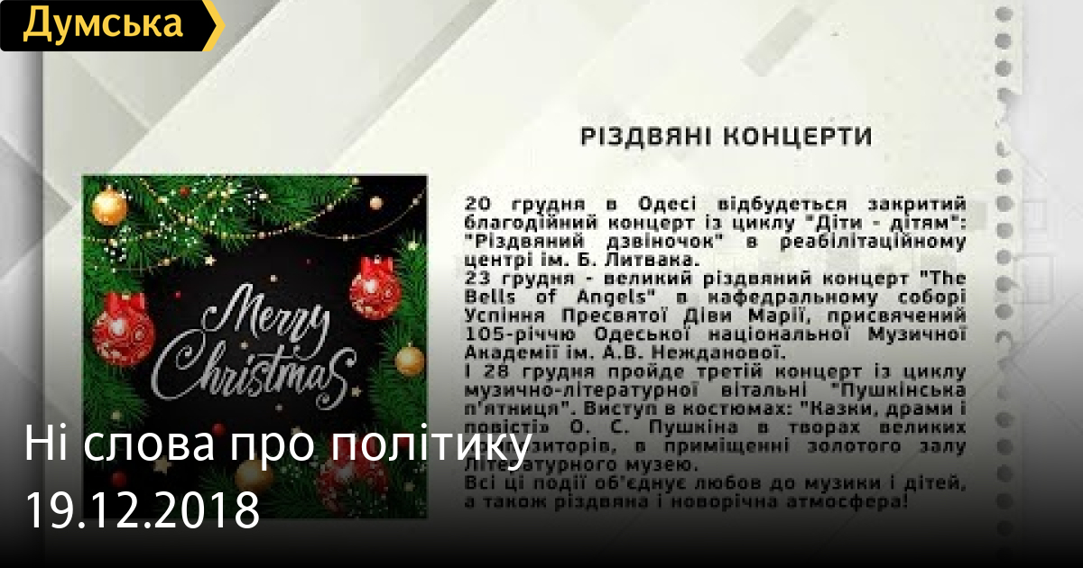 ТЕМА: СЕРІЯ БЛАГОДІЙНИХ РІЗДВЯНИХ КОНЦЕРТІВ