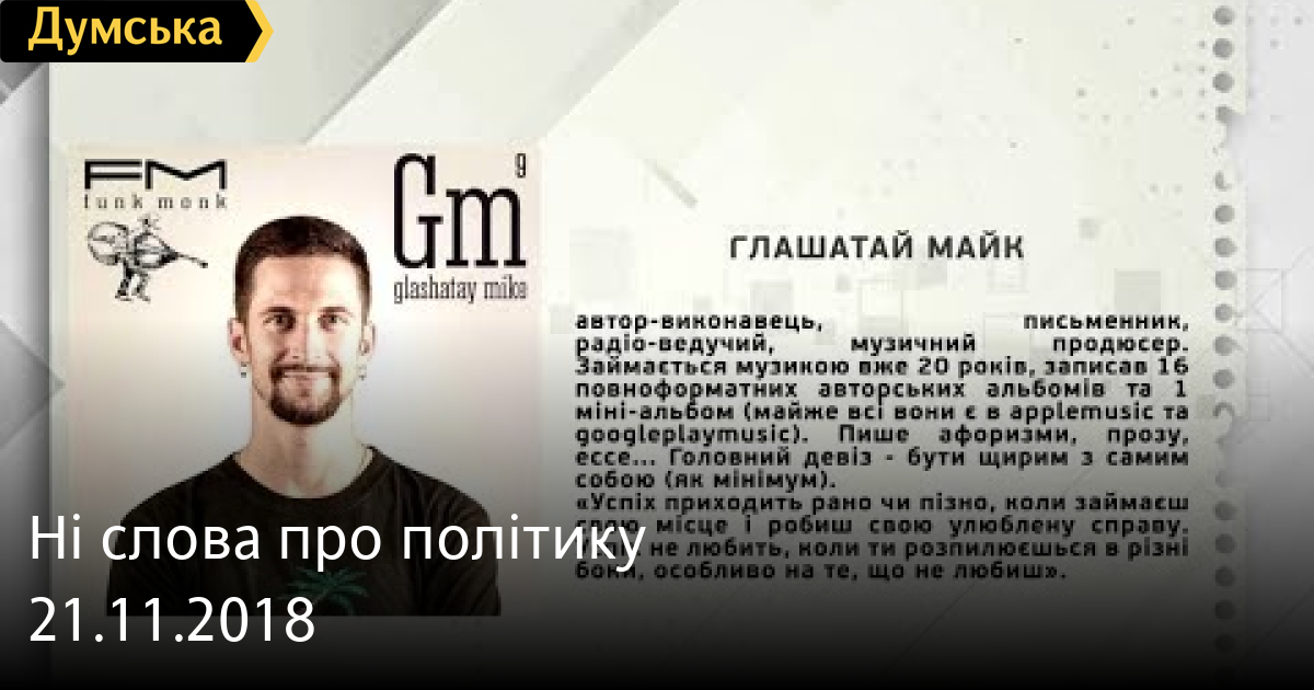 ТЕМА: ГЛАШАТАЙ МАЙК ПРО ТВОРЧІТЬ, НОВИЙ КЛІП І «СВІЙ ШЛЯХ»