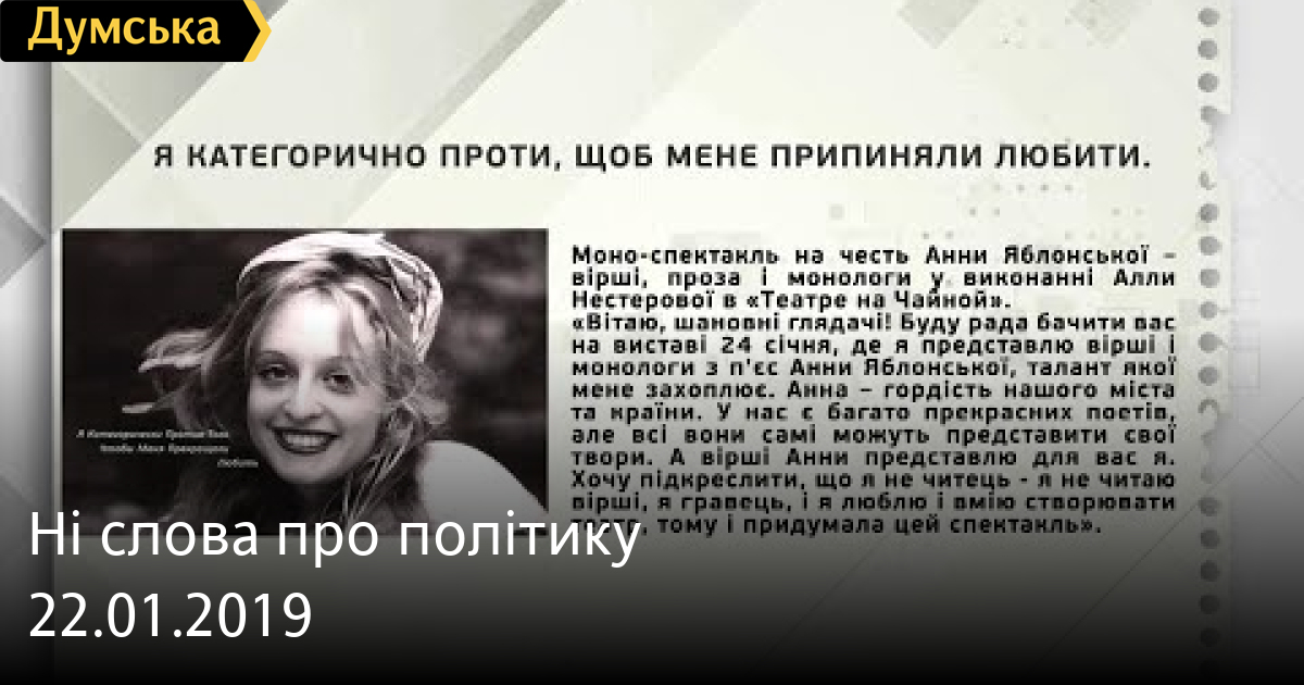 ТЕМА: МОНО-ВИСТАВА НА ЧЕСТЬ АННИ ЯБЛОНСЬКОЇ