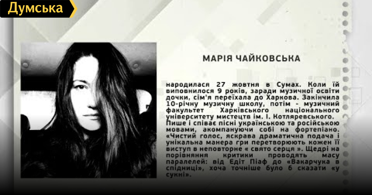 ТЕМА: ПРО ТВОРЧІСТЬ, ПОЕЗІЮ ТА КОНЦЕРТ 16 ГРУДНЯ Марія Чайковська, співачка VIDEO