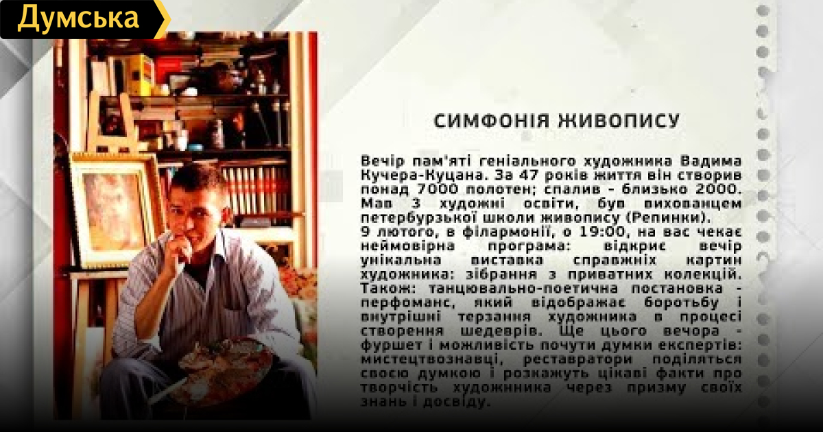 ТЕМА: ВЕЧІР ПАМ’ЯТІ ХУДОЖНИКА ВАДИМА КУЧЕРА-КУЦАНА