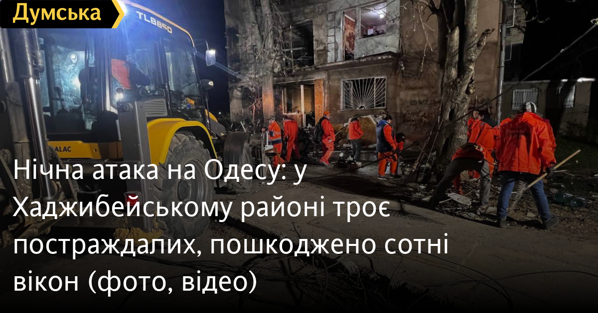 Нічна атака на Одесу: у Хаджибейському районі троє постраждалих, пошкоджено сотні вікон (фото, відео)Троє людей постраждали внаслідок дронової атаки в Хаджибейському районі Одеси у ніч на 5 квітня. За інформацією міської військової адміністрації, двоє з потерпілих наразі перебувають у лікарні, де їм надають необхідну медичну допомогу. Ще один проходитиме лікування амбулаторно. Через обстріл загорілися припарковані автомобілі. За попередніми даними станом на 7:00 ранку, вибуховою хвилею та уламками пошкоджено близько 250 вікон та 25 балконів. Ще чотири балкони зруйновані вщент. Попри пошкодження, у будинках наразі є світло та вода. Однак комунальники були змушені тимчасово відключити газопостачання з міркувань безпеки. Ліквідація наслідків атаки розпочалася одразу вночі. На місці працюють понад сотня фахівців комунальних служб та залучена спецтехніка. Розгорнуто мобільний «Пункт незламності». Також на місці працюють представники районної адміністрації, які приймають заяви від людей на отримання грошової компенсації. СМЕРТЬ РОСІЙСЬКИМ ОКУПАНТАМ! Помітили помилку? Виділяйте слова з помилкою та натискайте control-enter |
