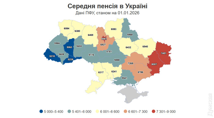 Традиционно самые высокие пенсии зафиксированы в Киеве (почти 9 тыс. грн), а самые скромные — в Тернопольской области (около 5 тыс. грн). Одесская область со своими 6 317 грн занимает место в «середняках».