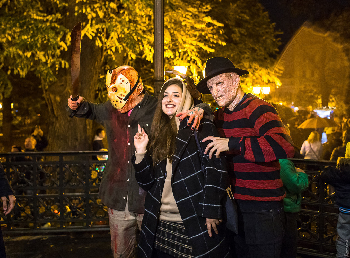 Ежегодное празднование Хеллоуина в Городском саду прошло сегодня, несмотря на начавшийся еще за час до мероприятия дождь. Любители страшного веселья приходили к ротонде целыми семьями, переодевшись в жуткие, а иногда и смешные костюмы. Самые маленькие гордо несли тыквы, вырезанные вместе с родителями и расставляли на парапете вокруг беседки. Детвора с удовольствием фотографировалась с обладателями самых ярких костюмов. Особым спросом пользовались герои американских ужастиков: Джейсон Вурхиз (главный герой серии фильмов «Пятница 13-е»), Фредди Крюгер (в представлении не нуждается) и Призрачное лицо (маньяк из фильмов «Крик»). Фото — Александр Гиманов СМЕРТЬ РОСІЙСЬКИМ ОКУПАНТАМ! Помітили помилку? Виділяйте слова з помилкою та натискайте control-enter |