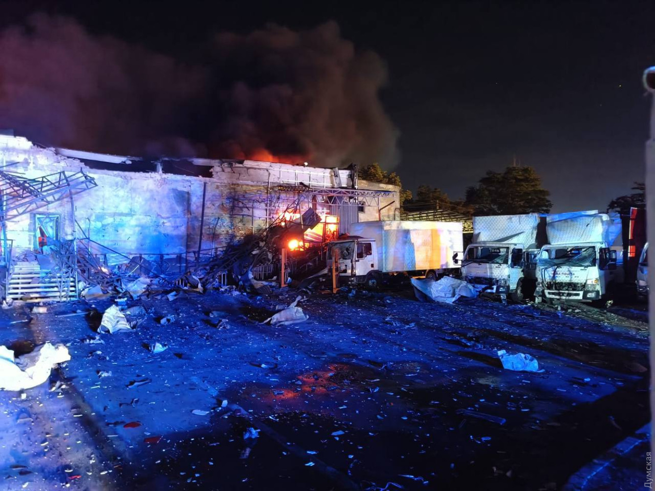 Поштове відділення знищено в результаті нічної атаки безпілотників на Ізмаїл, загиблих і постраждалих немає. Як повідомляють рятувальники, на місці прильоту спалахнула пожежа, яка перекинулася і на фури, що стояли поруч.