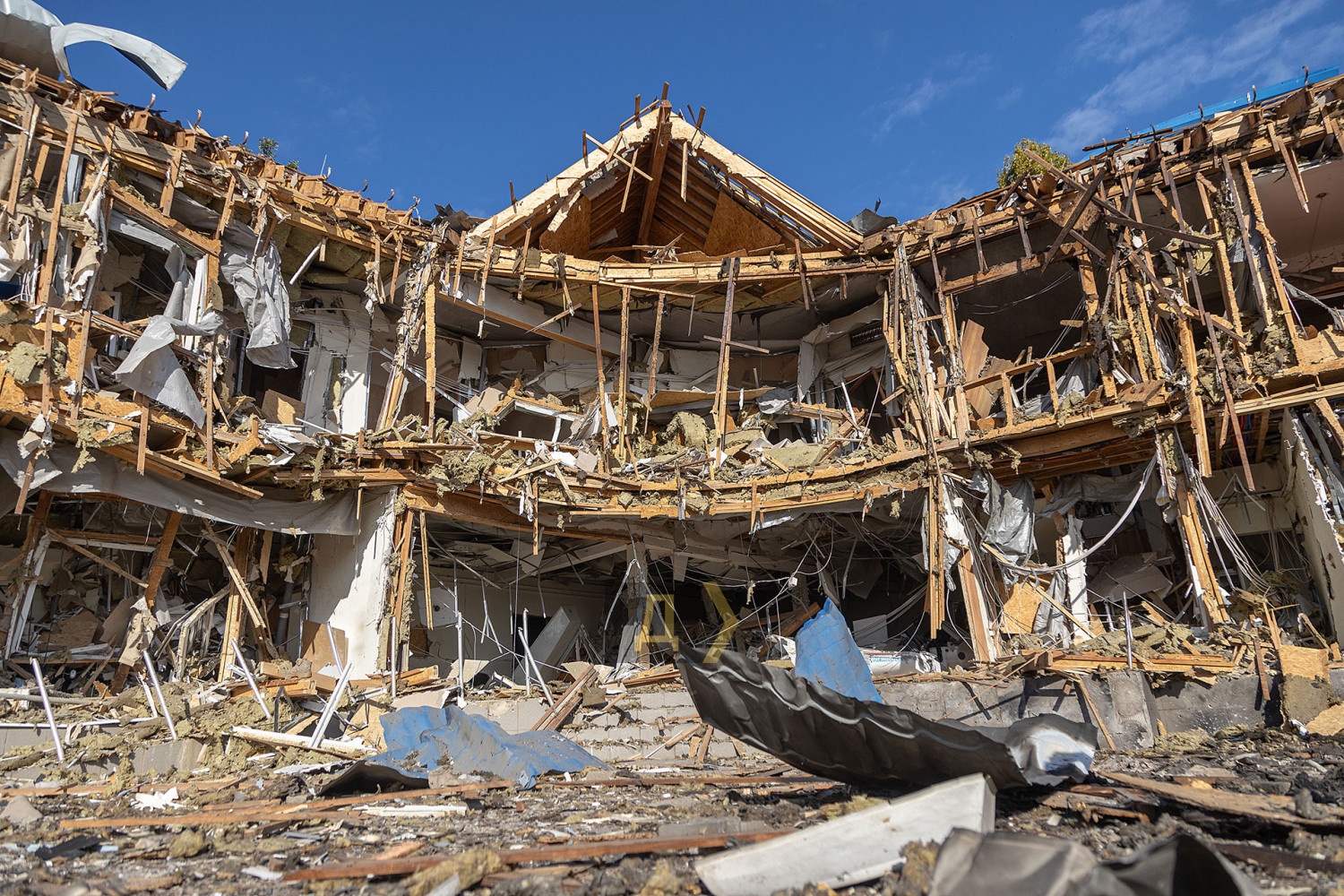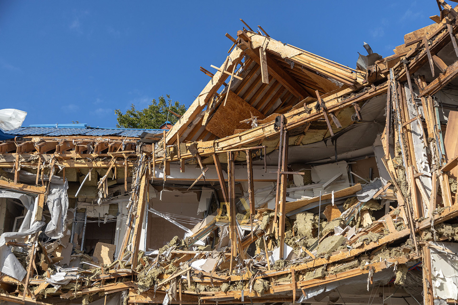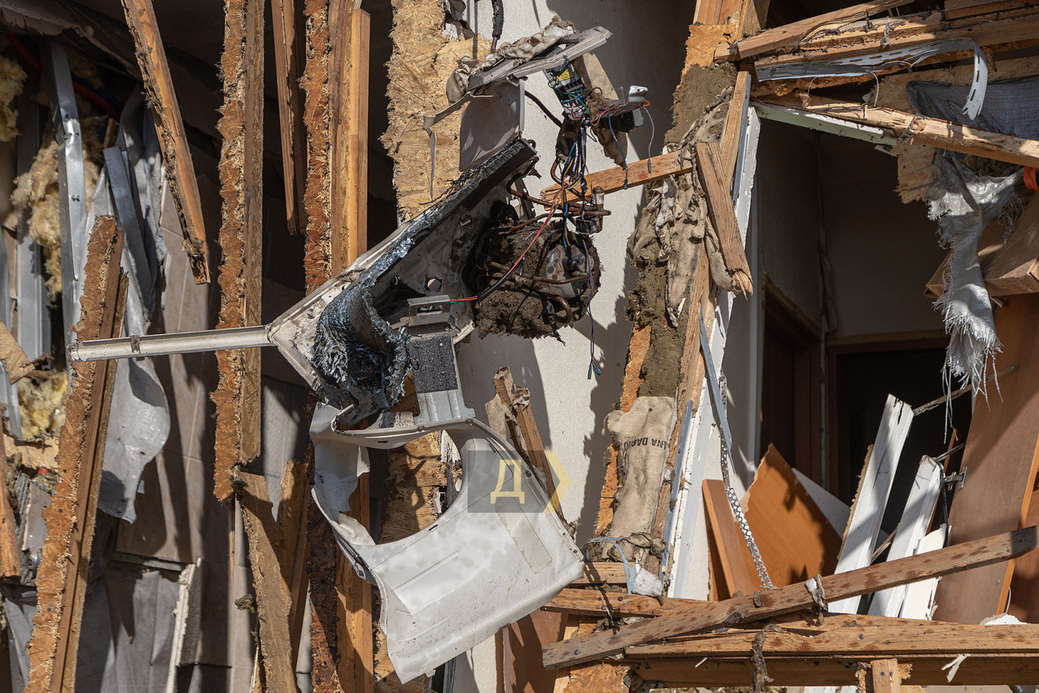 Як повідомляє кореспондент «Думської», уламки «балалайки» впали за три метри від ганку будівлі. Вибуховою хвилею зірвало весь фасад і, судячи з усього, пошкодило навіть несучі конструкції будівлі. Уламки фасаду і профнастилу валяються навіть у воді в акваторії яхт-клубу.
