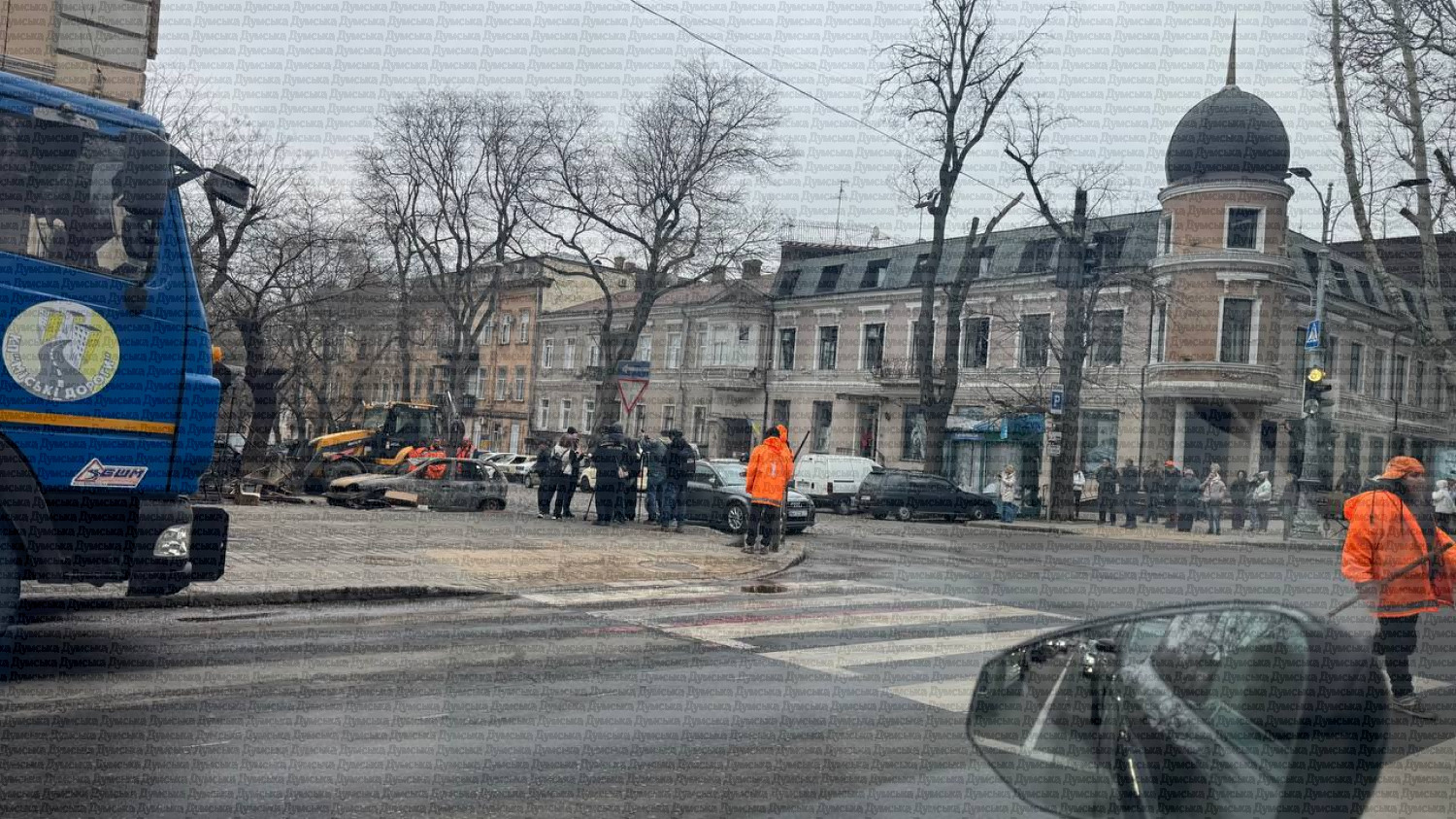 Последствия прилета на углу Еврейской и Ришельевской. Там самые большие разрушения во время вчерашней атаки.
