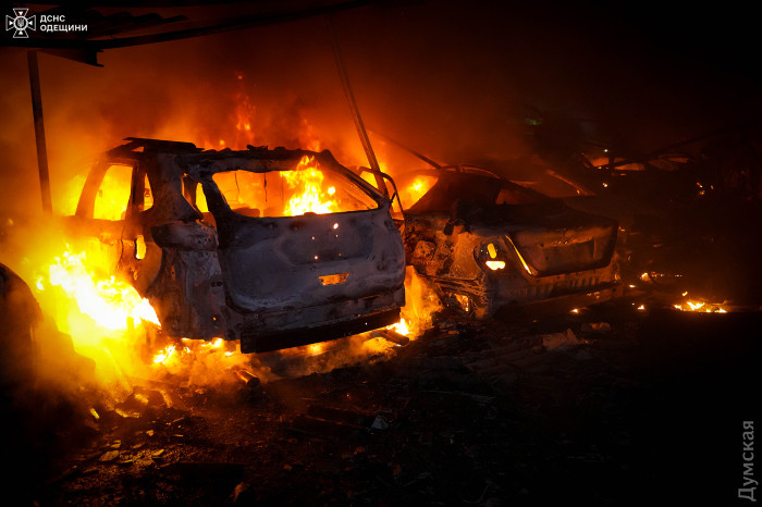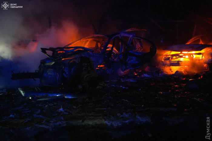 20 машин згоріло внаслідок масованої дронової атаки на Одесу в ніч на 25 травня, постраждалих немає.