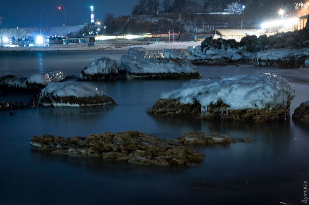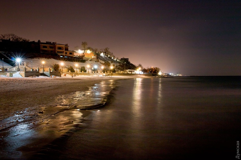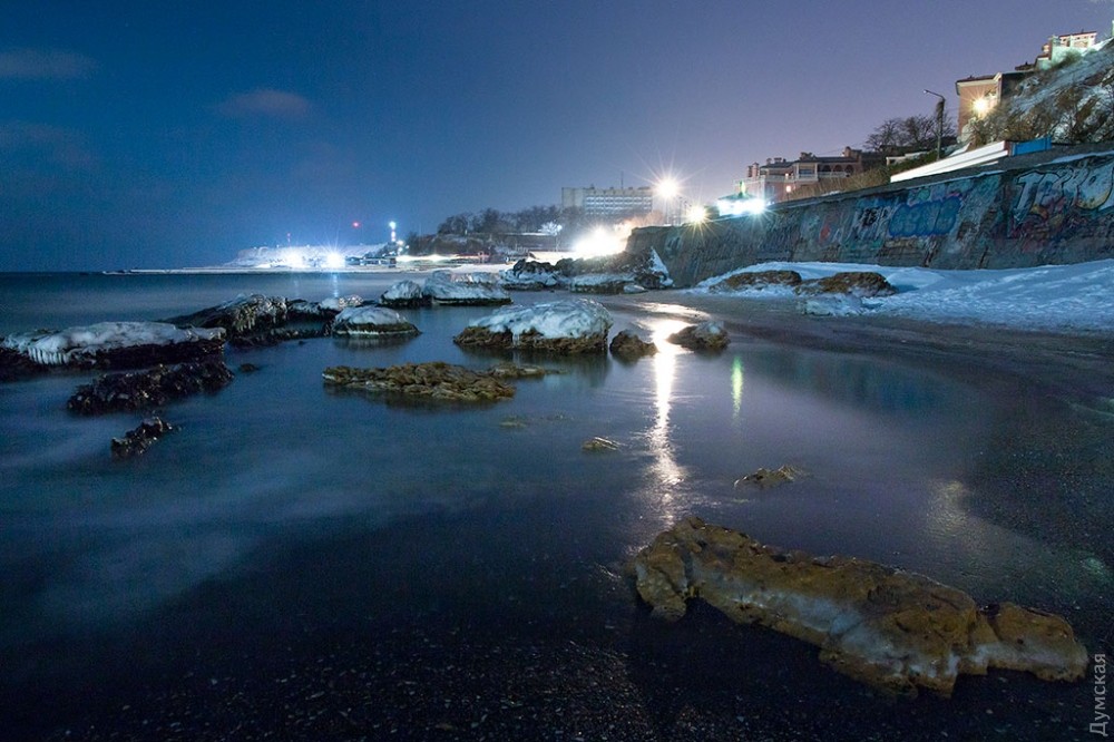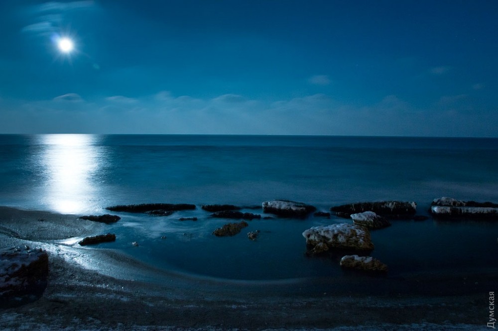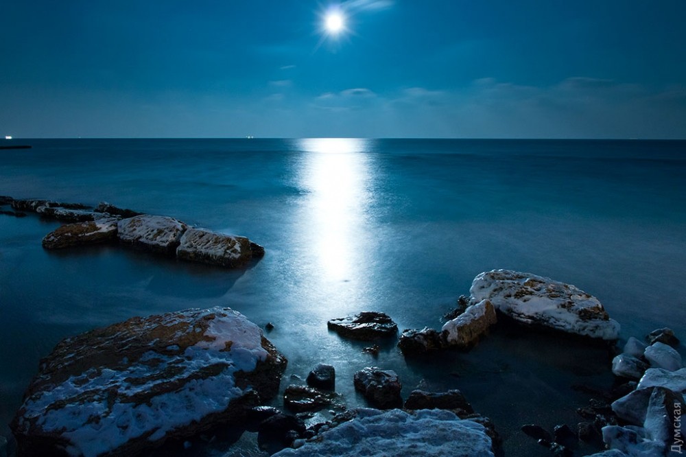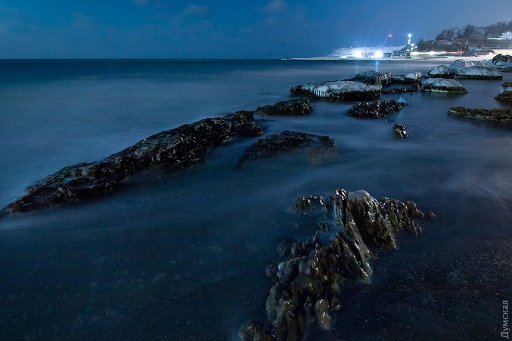 Фотокорреспондент «Думской» Александр Гиманов предлагает вашему вниманию несколько кадров зимнего Черного моря ночью.