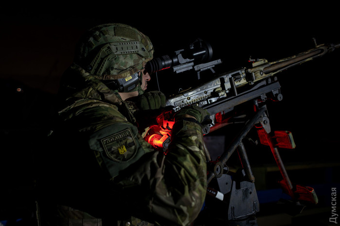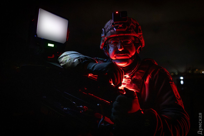 Останній тиждень росіяни атакують Одесу цілодобово. Мабуть, простіше порахувати години або навіть хвилини, коли повітряна тривога не звучить, ніж навпаки. І вдень, і вночі противник направляє в нашу область розвідників, б'є балістикою, крилатими ракетами, шахедами, виснажує копійчаними «герберами», які також можуть нести бойову частину. І все це без зупинки, намагаючись не тільки вразити важливі цілі, а й вимотати протиповітряну оборону. Кореспондент «Думської» побував на нічному чергуванні «мисливців на шахедів» – мобільної вогневої групи штурмового полку «Цунамі» бригади Національної поліції «Лють». Йому слово. «Дванадцять км, висота два, він по ходу знижуватиметься, – сержант поліції Іван з позивним «Кобальт» спокійним голосом озвучує актуальне положення ворожого безпілотника, що наближається до берега. – Дев'ять км, на годину (мається на увазі напрямок – Ред.) шість км, на 12 годину повертає». Трохи попереду двоє напарників, командир групи, майор з позивним «Ворон» і сержант Володимир завмерли біля своїх кулеметів: американського великокаліберного М2 Браунінга і німецького МГ 42/59. Долоні в тактичних рукавичках міцно стискають гашетки в очікуванні, коли ціль підійде на відстань пострілу. «Чотири км, 12 годин три, йде на нас », – карбує Кобальт. Відстань стрімко скорочується. У повітрі висить напруга, невидима рука робить звук морського прибою тихішим, в принципі, вся навколишня дійсність немов стає на паузу. Раптово праворуч від нас, з темряви в бік горизонту з характерним звуком вилітають яскраво-червоні трасери. Через секунду короткими чергами починають працювати й Ворон з Володимиром. З оглушливим звуком зі стволів виривається полум'я. Кожен третій патрон – трасувальний розрізає солоне повітря яскравою іскрою, відбиваючись в морській воді спотвореним відблиском. Нічне небо спалахує. З усіх боків починають працювати вогневі групи, в повітря злітають невидимі дрони-перехоплювачі. В голові спливає картинка з «Зоряних воєн» Джорджа Лукаса. Яскраві пунктирні лінії трасерів сходяться в одній точці, супроводжуючи ворожий безпілотник у міру його наближення до берега. Раптовий вибух, яскравий спалах, клубок чорного диму, з якого висипається гроно іскор, повільно зноситься в бік нічним бризом. «Є, збили», – «мисливці» не можуть стримати емоцій. Хто збив ціль, не дуже зрозуміло, начебто не наша група, але бійці не сумують, жартують: «Зараз всі почнуть писати, що саме вони збили». Іван дивиться в планшет. «75 км, він з двох годин там кружляє, звідки у нього стільки палива», – дивується поліцейський щодо найближчої цілі. Є трохи часу, щоб поговорити з учасниками вогневої групи про їхню роботу. Ніч тиха, вітру майже немає, море розмірено б'ється об піщаний берег. У просвітах між хмарами вже показалися перші боязкі зірки. Сідаємо з командиром мобільної вогневої групи Анатолієм з позивним «Ворон» на невелику лавку. Дяді Толі, як називають його побратими, 52 роки. Чоловік все життя прослужив у поліції. У 2015 році у складі підрозділу «Шторм» виконував завдання на сході України. З 2022 року вже в батальйоні «Цунамі» звільняв Херсонську область. Під час форсування Інгульця у чоловіка стався інфаркт. Після стентування він повернувся на службу, знову їздив до Покровська, Краматорська. Минулого року воїну замінили колісний суглоб на протез. Від 