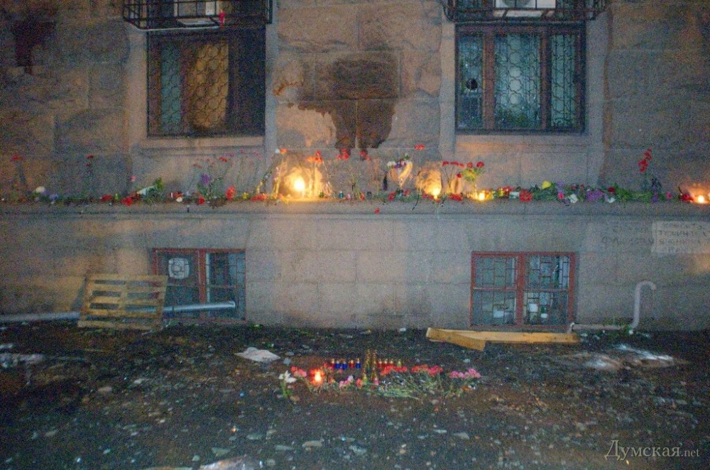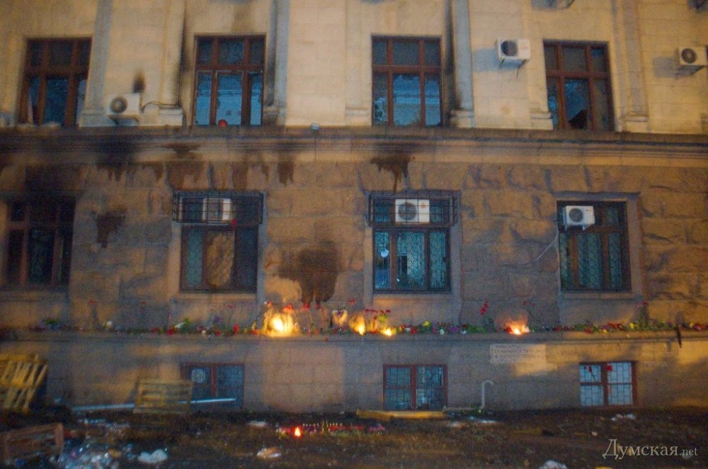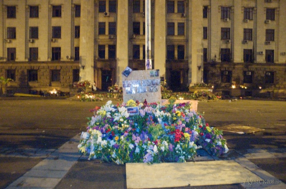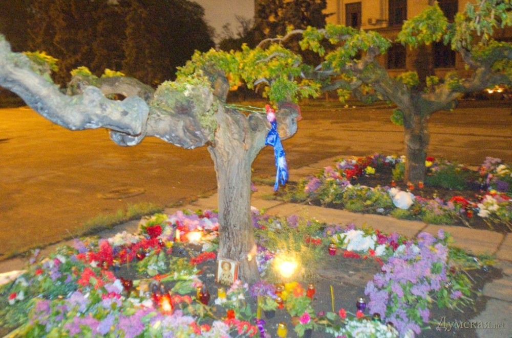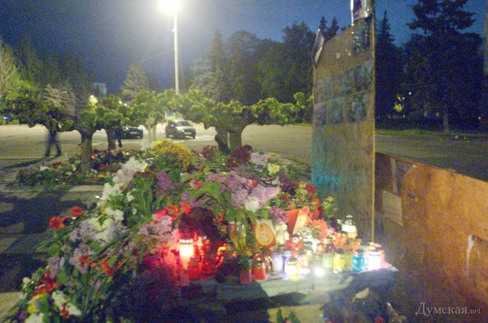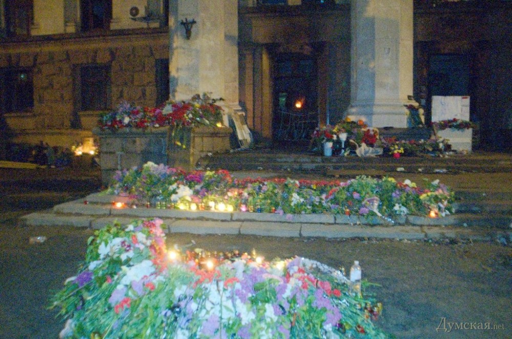 На площади Куликово Поле в Одессе и в здании федерации профсоюзов, где 2 мая в ходе уличных столкновений в результате пожара погибло более тридцати человек, в течение всей прошедшей ночи горели поминальные свечи. Импровизированный мемориал на площади и возле здания усыпан цветами, которыми в течение вчерашних траурных мероприятий сюда несли жители города. На флагштоке — приспущенный государственный флаг Украины. На площади и в районе здания находятся сотрудники милиции. 5 мая продолжаются траурные мероприятия по погибшим как в Одессе, так и по всей Украине. СМЕРТЬ РОСІЙСЬКИМ ОКУПАНТАМ! Помітили помилку? Виділяйте слова з помилкою та натискайте control-enter |