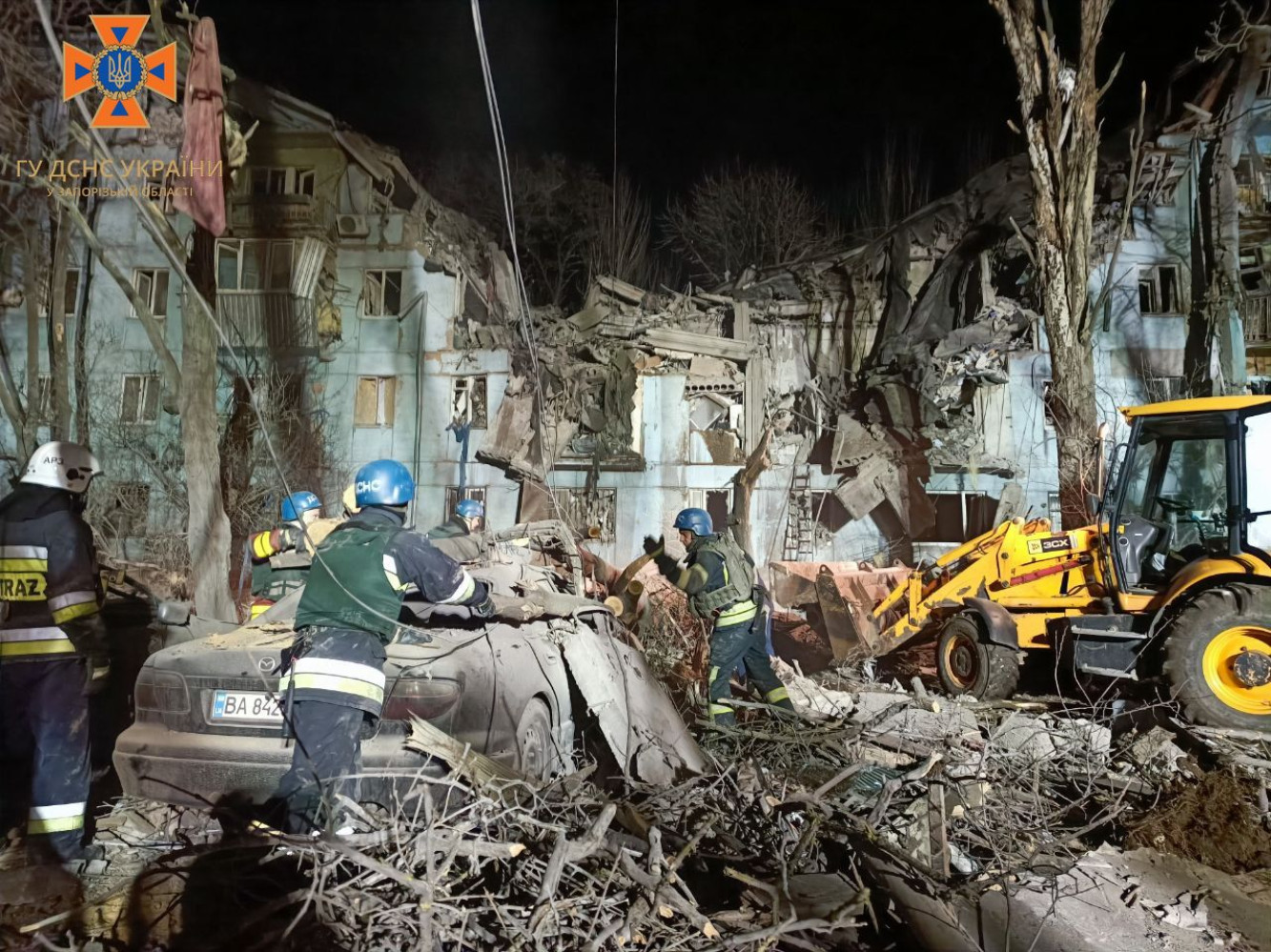 Вночі окупанти вдарили по житловому будинку у Запоріжжі: четверо людей загинули, з-під завалів врятовано 11 осіб (фото, відео, оновлено)Ракетний удар по житловому будинку в Запоріжжі нанесли російські окупанти вночі 2 березня. В результаті цього загинули двоє людей, ще шестеро отримали поранення. Як повідомили в поліції Запорізької області, ворожий снаряд зруйнував три поверхи в п'ятиповерхівці. Знищено понад десять квартир з першого до п'ятого поверху. Крім того, уламками та вибуховою хвилею пошкоджено довколишні будинки. В ДСНС України розповіли, що станом на 06:30 на місці ракетного удару з-під завалів врятовано 11 осіб, з них одна вагітна жінка, ще 20 мешканців евакуйовано з сусіднього під'їзду. Пошуково-рятувальні роботи тривають. До них залучено 24 одиниці техніки і 89 рятувальників, розгорнуто додатковий пункт незламності, працює штаб з ліквідації НС. ОНОВЛЕНО о 09:08. Голова Офісу президента Андрій Єрмак повідомив, що кількість загиблих збільшилася до трьох осіб, ще п'ятьох людей госпіталізовано. ОНОВЛЕНО об 11:12. У прокуратурі Запорізької області заявили про загибель вже чотирьох людей, ще п'ятеро вважаються зниклими безвісти, серед них одна дитина. СМЕРТЬ РОСІЙСЬКИМ ОКУПАНТАМ! Помітили помилку? Виділяйте слова з помилкою та натискайте control-enter |