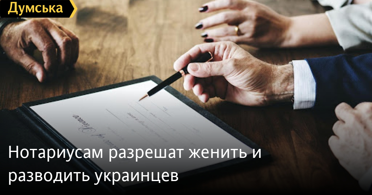 Министерство юстиции планирует до конца текущего года передать частным и государственным нотариусам право женить и разводить украинцев. Министр юстиции Украины Денис Малюська подчеркнул, что это абсолютно нормальная практика, пишет UBR. «Мы хотим, чтобы государственные и частные нотариусы могли регистрировать браки и разводы. Но только те, где взаимное согласие, где нет несовершеннолетних детей и любых споров. Почему бы и нет?», — отметил руководитель министерства. Он добавил, что также до конца 2020 года планируется запустить в Украине систему электронного нотариата. «Постепенно мы переходим к системе электронного нотариата. Кроме того, в ближайшем будущем нотариусы смогут заверять электронные документы», – сообщил Денис Малюська. Он уточнил, что соответствующий законопроект уже готов, и если Верховная рада примеn его в течение нескольких месяцев, то рабочая система электронного нотариата появится до конца года. СМЕРТЬ РОССИЙСКИМ ОККУПАНТАМ! Заметили ошибку? Выделяйте слова с ошибкой и нажимайте control-enter |