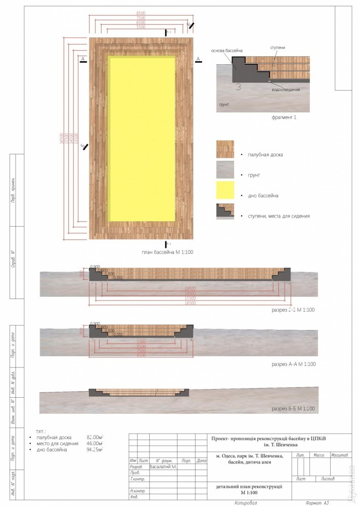 Новое общественное пространство в заброшенном бассейне парка Шевченко будет скромнее, чем задумывалосьНовое общественное пространство, в которое неравнодушные одесситы задумали превратить заброшенный бассейн в парке Шевченко (рядом с Детской аллеей), будет скромнее, чем предполагалось ранее. Об этом «Думской» рассказал программный директор «Impact Hub Odessa» Александр Славский – эта организация является инициатором проекта ревитализации бассейна. По его словам, проект пришлось подкорректировать по двум причинам. Во-первых, из-за недостатка средств — собрать смогли примерно 40 тысяч грн из запланированных 180 тыс. Ну а кроме того, на уменьшении параметров будущего объекта настояло муниципальное управление архитектуры. «Нам оставили только сам бассейн. Покрытие, которое мы планировали постелить вокруг него, пришлось из проекта убрать. Там по плану будет газон», — отметил Славский. Сейчас документы находятся на согласовании в мэрии. В «Impact Hub Odessa» надеются, что к концу недели чиновники дадут добро и можно будет приступать к работе. Напомним, лучший проект NEWбассейна выбрали на конкурсе. Победила идея архитекторов Максима Васалатия, Евгения Терзи, Елизаветы Чабан и специалиста по альтернативной энергетике Павла Коэна. Бассейн станет общедоступным открытым пространством для встреч, детских игр, занятий спортом и культурных мероприятий. СМЕРТЬ РОСІЙСЬКИМ ОКУПАНТАМ! Помітили помилку? Виділяйте слова з помилкою та натискайте control-enter Новини по цій темі: 13 червня 2025: Суд відібрав Дюковський сад Одеси у фірми-«пустушки» і повернув місту: за боргами ніхто платити не буде 30 травня 2025: Корабель Землі: на одеській Трасі здоров'я з'явилася величезна дзеркальна куля від Михайла Реви (фото) |