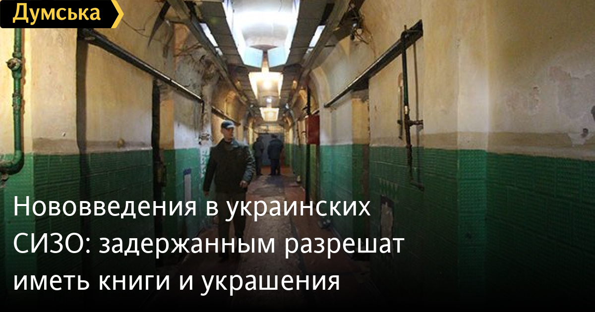 Нововведения в украинских СИЗО: задержанным разрешат иметь книги и украшенияРежим работы следственных изоляторов в Украине в скором времени претерпит существенных изменений. Об этом сообщил министр юстиции Денис Малюська в своем Фейсбук. Нововведения будут касаться, в частности, исполнения решений Европейского суда по правам человека. Так, в камерах СИЗО появятся холодильники, но не за государственный счет, а в прогулочных двориках – дополнительные возможности для занятий спортом, помимо стандартных перекладин и брусий. Адвокатам дадут возможность работать с лэптопами и портативными принтерами. Задержанным женщинам разрешат иметь украшения из недрагоценных материалов, а гражданам в СИЗО (даже в карцеры) разрешат брать с собой книги. «И мое любимое: прическа. Длина волос у мужчин может превратиться из просто короткой в более либеральную с лимитом длины в 5 сантиметров», — отметил Малюська. Напомним, с начала мая в украинских следственных изоляторах заработал новый пилотный проект — платные камеры с повышенным комфортом, который уже принес государству более 500 тыс. гривен. Все вырученные таким образом деньги пойдут на улучшение условий содержания в обычных камерах. СМЕРТЬ РОССИЙСКИМ ОККУПАНТАМ! Заметили ошибку? Выделяйте слова с ошибкой и нажимайте control-enter |