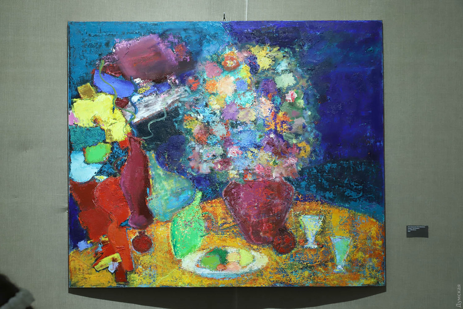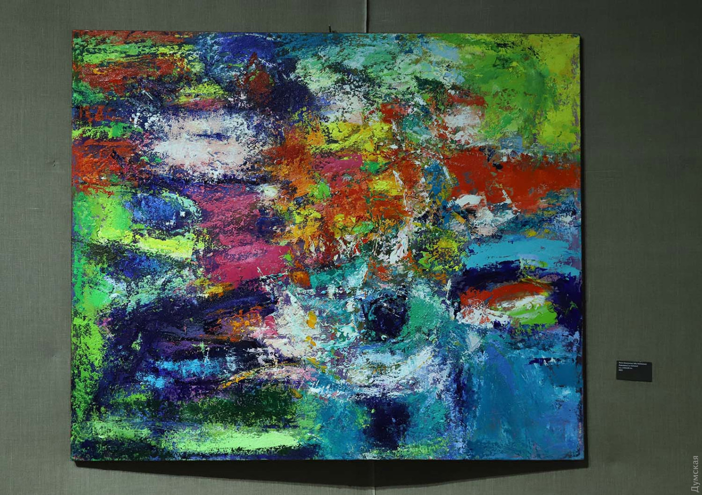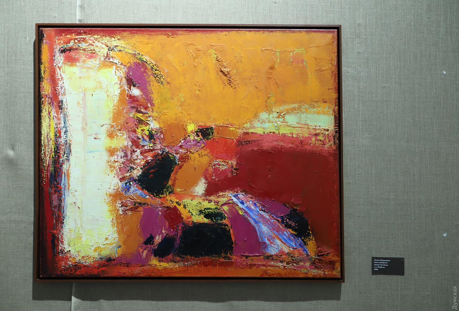 Киев представляют супруги-художники Алла Алексеева и Петр Лебединец, Одессу — Леонид Багрий. Каждому художнику досталось по залу – обзор начинается с ярких абстракций Петра, затем зритель попадает в царство цветов от Аллы, а завершается все философскими полотнами Леонида. В той или иной степени каждый автор отдает дань абстракции.