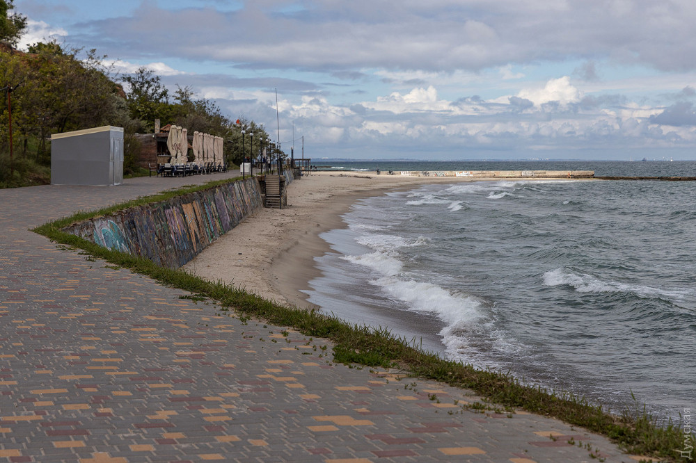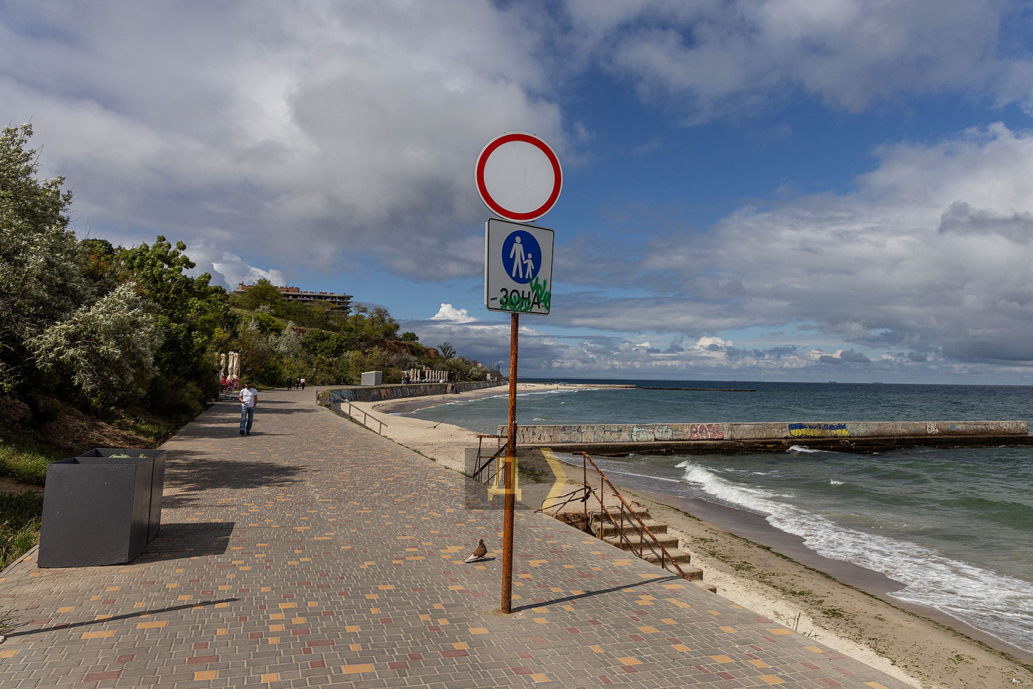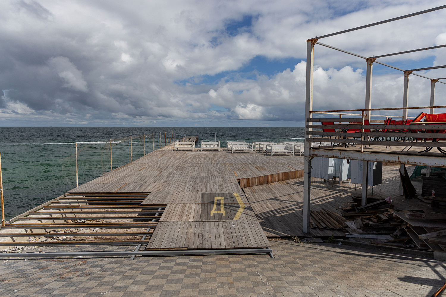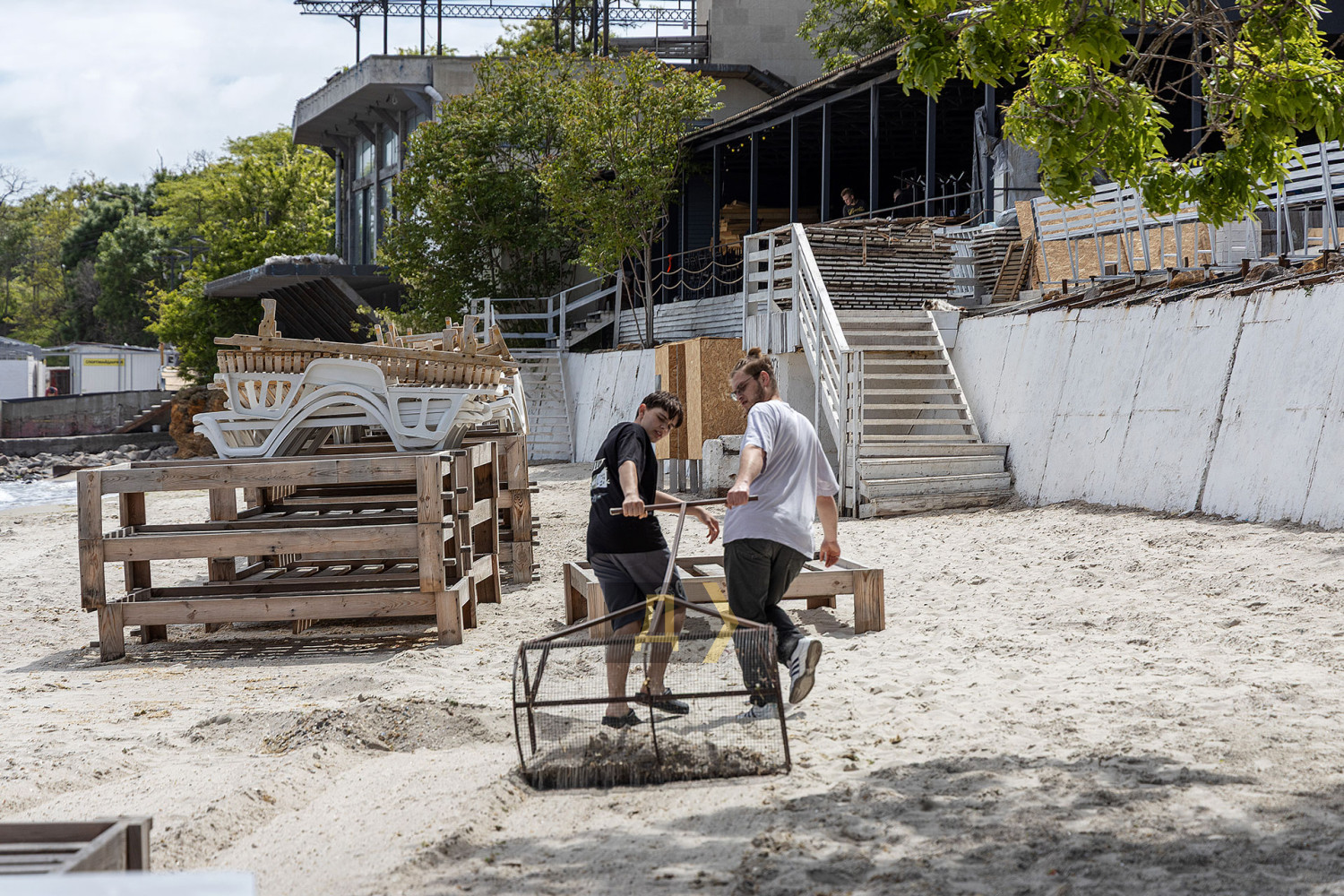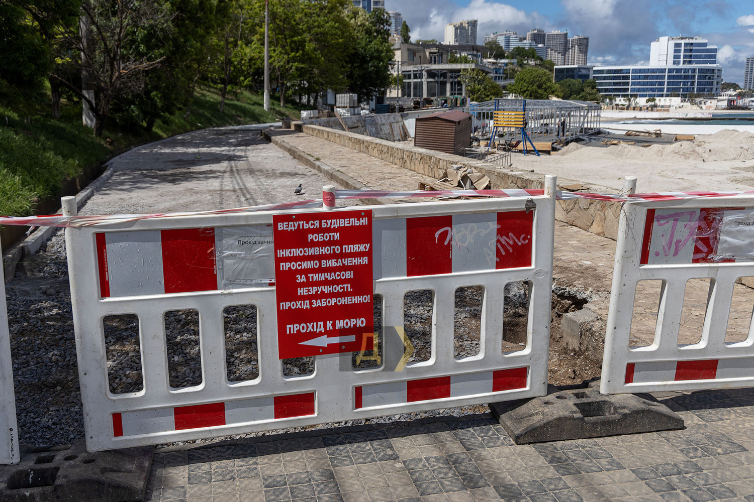 Уже завтра, цієї неділі — літо. Сонце, море, відпочинок. Але чи готові одеські пляжі до сезону? Що там із безпекою берегової лінії, доступністю, інфраструктурою, чистотою? Обласна та міська влада тримає багатозначну паузу і не поспішає оголошувати щасливчиків, які виконали суворі вимоги воєнного часу. «Думська» проінспектувала міські пляжі. Сьогодні до вашої уваги фотозвіт про стан берегової лінії від 10-ї до 16-ї станції Великого Фонтану. Обережно — багато фотографій! Перше, що впадає в око - це безлюдність пляжів, набережних і Траси здоров'я. Зрозуміло, що погода ще не дуже-то й спонукає до водних процедур, але людей зовсім мало — по 2-3 людини на пляж. Є, звісно, і винятки, але про них пізніше. Ми стартуємо з набережної в районі 9-ї станції Фонтану, облаштованої «трудами і турботами» власника замку Гаррі Поттера. Від пляжу тут практично нічого не залишилося: бетонні траверси розбиті, галька змита в море, місцями хвилі б'ються в підпірну стіну і сходинки, що ведуть до пляжу. Кабінки для переодягання, встановлені вздовж стіни, виглядають як після ворожого обстрілу. Величезний пляж «Чайка» також пустельний. Шезлонги, парасольки тут явно ще не затребувані, зате чималу частину займає літній майданчик якогось питного закладу. У кутку пляжу, буквально під апартаментами «Марістелла», які були колись рятувальною станцією, нагромадження бувалого пляжного приладдя. Ми вже писали про те, чому пляжі не можна перетворювати на склади і чим це загрожує, великий матеріал про те тут. Наші журналісти зверталися з цією проблемою до правоохоронців і в КП «Узбережжя Одеси», на жаль, безрезультатно. Зовсім недавно Про те, що формально сезон ще не розпочався, найяскравіше свідчить те, що всі рятувальні вишки в межах 10-16 станції Фонтану порожні. Пляжні комерсанти, при цьому, вочевидь щось знають: більшість кав'ярень відчинені, елітні й не дуже комплекси наводять останній марафет. Вдалося навіть спостерігати як біч-бої просівають пісок. Активно тривають роботи на інклюзивному пляжі 11-го Фонтану: тут закопали настил, яким буде зручно пересуватися на візку, і будують величезний навіс. Прохід тут тимчасово перекрито. У деяких місцях з'явилися нові настили, але заставляти її пляжними меблями орендарі поки не поспішають. Набережна в районі 11-ї станції втомилася за зиму і явно потребує косметичного ремонту. Пляжний комплекс «Public», що став відомим після ось цієї пікантної історії, вже готовий до прийому відвідувачів. Ціни, до речі, торішні: шезлонг обійдеться в 200 гривень, бунгало — в 400. Пляж у районі 13-ї станції, який довгі роки носив назву «Рів'єра», судячи з усього, обзавівся новими суборендарями. Тут встановили величезні гойдалки, до яких шикується черга з інстаграм-інфлюенсерів. На цьому з благоустрою все: у центральній частині пляж абсолютно не доглянутий. Іржавіє старий настил, а з-під піску пробивається травмонебезпечний фундамент якихось будівель. Пляж на 14-й станції в кращому стані. З одного його боку готовий зустріти гостей комплекс Cuba: з іншого — як завжди, переповнений людьми «Кораблик», у центрі відновлюється після нещодавньої пожежі комплекс «Ківі». Тут ми до речі виявили уламки російського безпілотника типу «шахед». Судячи з усього, наше доблесне ППО збило смертоносний дрон у морі під час підльоту до узбережжя. Один із найжвавіших пляжів — спортивний.