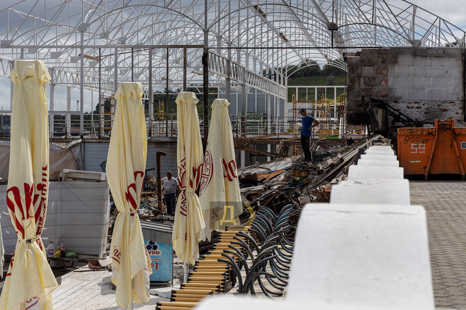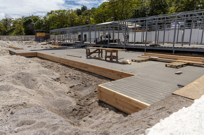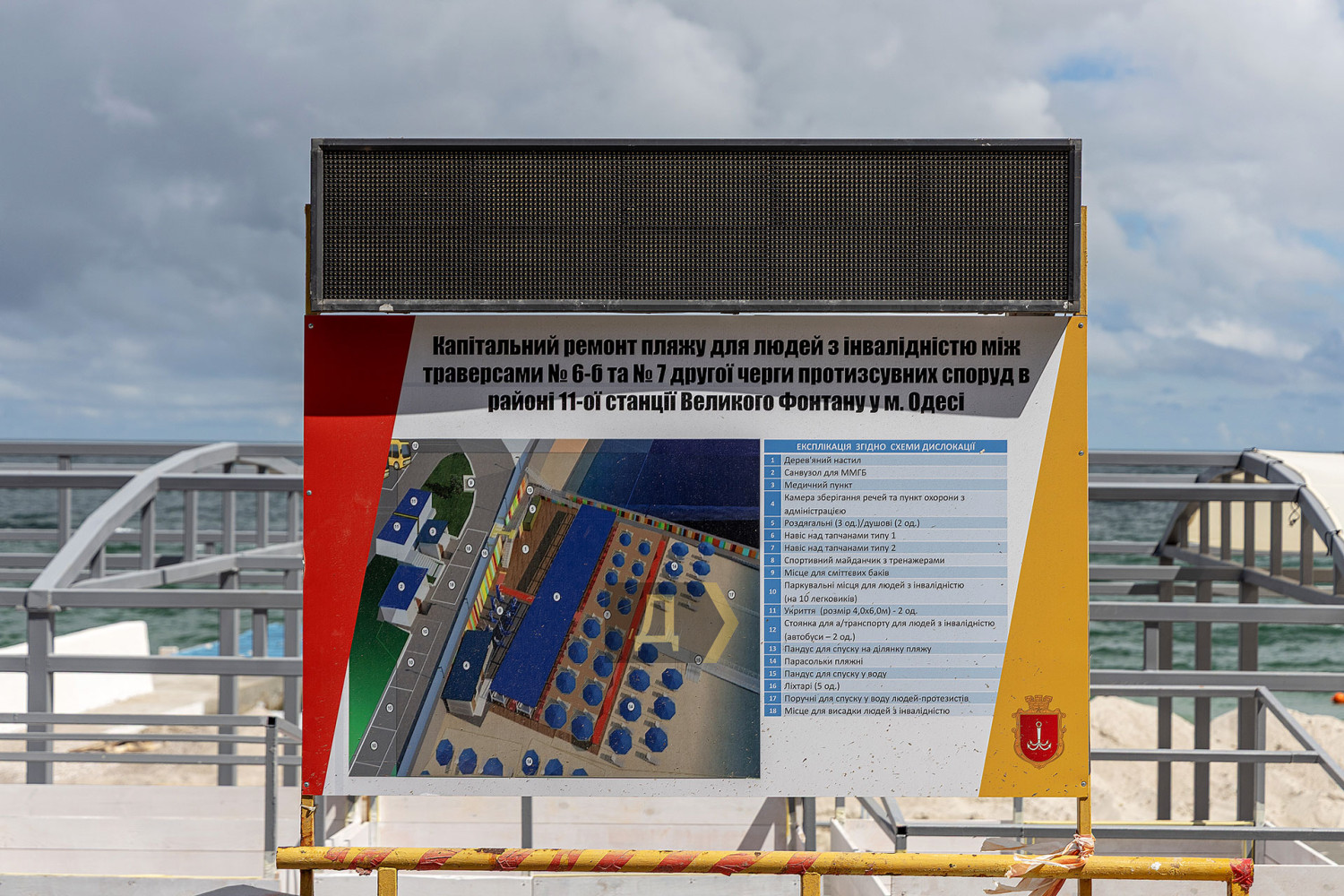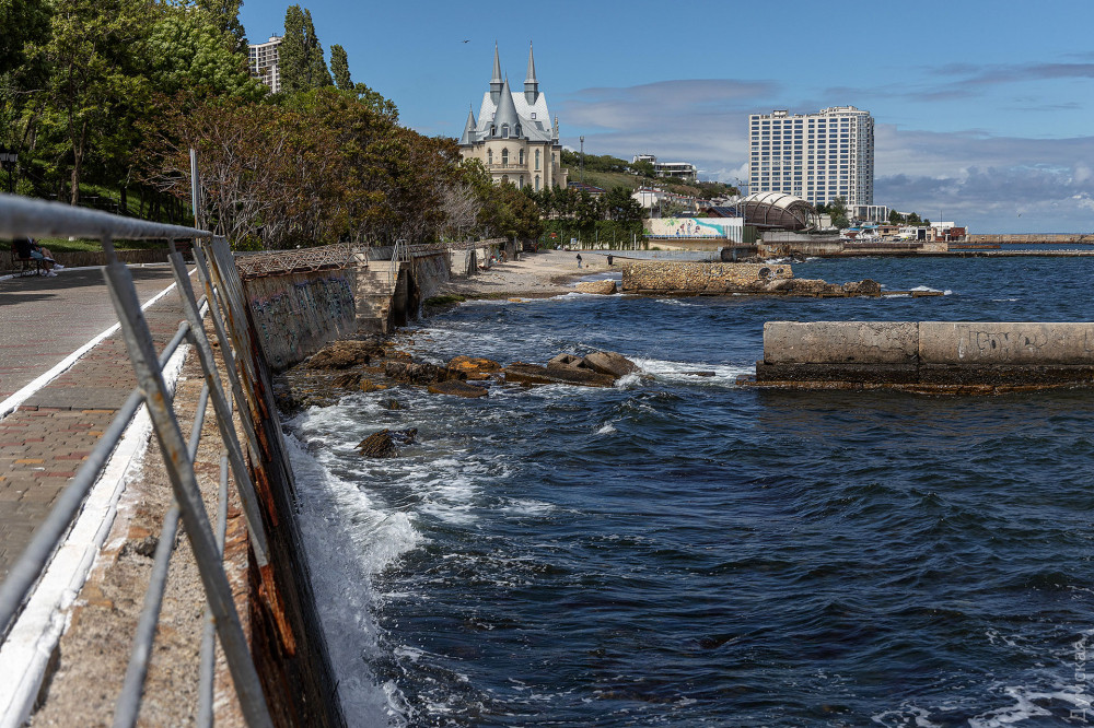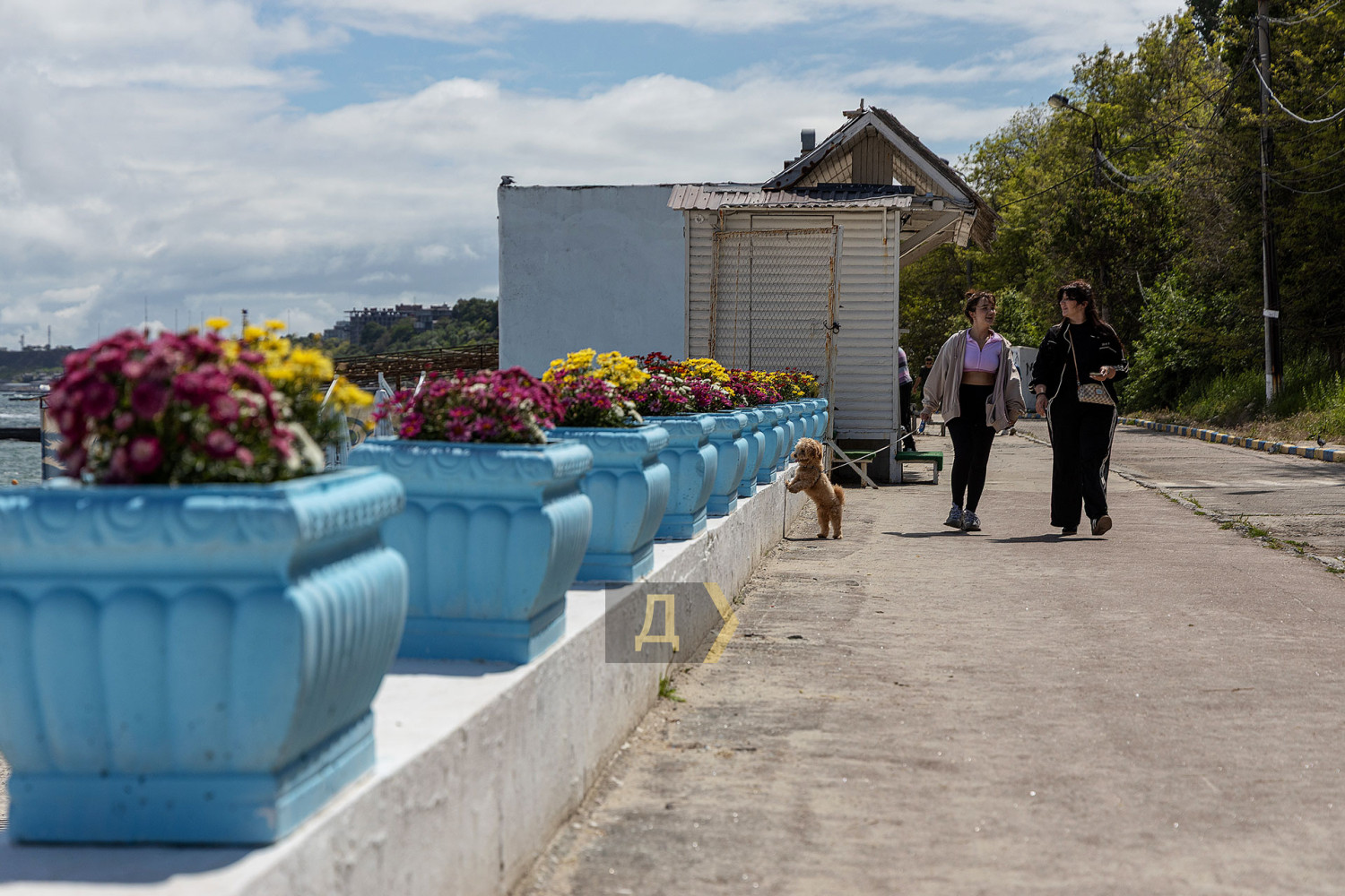 Уже завтра, цієї неділі — літо. Сонце, море, відпочинок. Але чи готові одеські пляжі до сезону? Що там із безпекою берегової лінії, доступністю, інфраструктурою, чистотою? Обласна та міська влада тримає багатозначну паузу і не поспішає оголошувати щасливчиків, які виконали суворі вимоги воєнного часу. «Думська» проінспектувала міські пляжі. Сьогодні до вашої уваги фотозвіт про стан берегової лінії від 10-ї до 16-ї станції Великого Фонтану. Обережно — багато фотографій! Перше, що впадає в око - це безлюдність пляжів, набережних і Траси здоров'я. Зрозуміло, що погода ще не дуже-то й спонукає до водних процедур, але людей зовсім мало — по 2-3 людини на пляж. Є, звісно, і винятки, але про них пізніше. Ми стартуємо з набережної в районі 9-ї станції Фонтану, облаштованої «трудами і турботами» власника замку Гаррі Поттера. Від пляжу тут практично нічого не залишилося: бетонні траверси розбиті, галька змита в море, місцями хвилі б'ються в підпірну стіну і сходинки, що ведуть до пляжу. Кабінки для переодягання, встановлені вздовж стіни, виглядають як після ворожого обстрілу. Величезний пляж «Чайка» також пустельний. Шезлонги, парасольки тут явно ще не затребувані, зате чималу частину займає літній майданчик якогось питного закладу. У кутку пляжу, буквально під апартаментами «Марістелла», які були колись рятувальною станцією, нагромадження бувалого пляжного приладдя. Ми вже писали про те, чому пляжі не можна перетворювати на склади і чим це загрожує, великий матеріал про те тут. Наші журналісти зверталися з цією проблемою до правоохоронців і в КП «Узбережжя Одеси», на жаль, безрезультатно. Зовсім недавно Про те, що формально сезон ще не розпочався, найяскравіше свідчить те, що всі рятувальні вишки в межах 10-16 станції Фонтану порожні. Пляжні комерсанти, при цьому, вочевидь щось знають: більшість кав'ярень відчинені, елітні й не дуже комплекси наводять останній марафет. Вдалося навіть спостерігати як біч-бої просівають пісок. Активно тривають роботи на інклюзивному пляжі 11-го Фонтану: тут закопали настил, яким буде зручно пересуватися на візку, і будують величезний навіс. Прохід тут тимчасово перекрито. У деяких місцях з'явилися нові настили, але заставляти її пляжними меблями орендарі поки не поспішають. Набережна в районі 11-ї станції втомилася за зиму і явно потребує косметичного ремонту. Пляжний комплекс «Public», що став відомим після ось цієї пікантної історії, вже готовий до прийому відвідувачів. Ціни, до речі, торішні: шезлонг обійдеться в 200 гривень, бунгало — в 400. Пляж у районі 13-ї станції, який довгі роки носив назву «Рів'єра», судячи з усього, обзавівся новими суборендарями. Тут встановили величезні гойдалки, до яких шикується черга з інстаграм-інфлюенсерів. На цьому з благоустрою все: у центральній частині пляж абсолютно не доглянутий. Іржавіє старий настил, а з-під піску пробивається травмонебезпечний фундамент якихось будівель. Пляж на 14-й станції в кращому стані. З одного його боку готовий зустріти гостей комплекс Cuba: з іншого — як завжди, переповнений людьми «Кораблик», у центрі відновлюється після нещодавньої пожежі комплекс «Ківі». Тут ми до речі виявили уламки російського безпілотника типу «шахед». Судячи з усього, наше доблесне ППО збило смертоносний дрон у морі під час підльоту до узбережжя. Один із найжвавіших пляжів — спортивний.