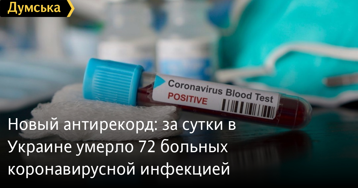 Новый антирекорд: за сутки в Украине умерло 72 больных коронавирусной инфекцией72 человека умерло за минувшие сутки в Украине от осложнений, вызыванных коронавируосм. Об этом сообщили в Совете национальной безопасности и обороны. Также за сутки лабораторно подтвердили 3103 новых случаев заражения. Больше всего Больше всего новых пациентов — в Киеве (428). От осложнений ковида в столице скончалось пять человек. Также среди лидеров Харьковская (292 заражений, шесть летальных исходов) и Тернопольская области (280 заражений, два летальных случая). Всего с начала эпидемии в Украине зафиксировали 151 859 лабораторно подтвержденных случаев COVID-19, из них 3148 летальных, 68346 пациентов выздоровели. СМЕРТЬ РОССИЙСКИМ ОККУПАНТАМ! Заметили ошибку? Выделяйте слова с ошибкой и нажимайте control-enter |
