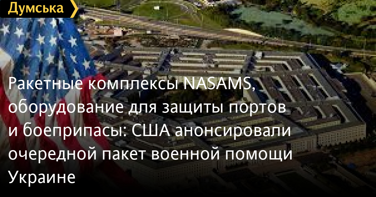 Ракетні комплекси NASAMS, обладнання для захисту портів та боєприпаси: США анонсували черговий пакет військової допомоги УкраїніПро новий пакет військової допомоги Україні загальною вартістю 1,3 мільярда доларів оголосило 19 липня Міністерство оборони США. Про це йдеться в повідомленні Пентагону. Допомога надається через «Ініціативу сприяння безпеці України» (USAI), тобто передбачене в новому пакеті обладнання буде придбане, а не вилучене із запасів американської армії. Цього разу будуть передані чотири ракетні комплекси класу «земля-повітря» NASAMS та боєприпаси до них; 152-мм артилерійські снаряди; обладнання для розмінування; протитанкові ракети TOW; безпілотні авіаційні комплекси Phoenix Ghost та Switchblade; високоточні авіаційні боєприпаси; засоби протидії БПЛА та радіоелектронної боротьби. Також планують придбати 150 паливозаправників; 115 тактичних автомобілів для буксирування та транспортування обладнання; 50 тактичних машин для евакуації техніки; обладнання для захисту портів та гаваней; тактичні системи захищеного зв'язку; «Сполучені Штати продовжуватимуть працювати зі своїми союзниками і партнерами над наданням Україні можливостей для задоволення її нагальних потреб на полі бою і довгострокових потреб у безпековій допомозі», — йдеться у повідомленні. СМЕРТЬ РОСІЙСЬКИМ ОКУПАНТАМ! Помітили помилку? Виділяйте слова з помилкою та натискайте control-enter |