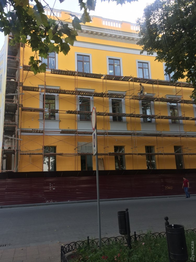 Комплексная реставрация полуциркульного дома №7 по Приморскому бульвару близка к завершению. Как передает корреспондент «Думской», памятник архитектуры поменял оттенок, который стал более насыщенным. Реставраторы утверждают, что именно такой цвет у здания был после строительства. Дом №7 построили в 1826-1830 годах по проекту архитекторов Мельникова и Боффо. Сто лет назад оно было известно как Присутственное место. Здесь до 1917 года размещались различные административные учреждения. В частности, в здании заседали городская дума, приказ общественного призрения, строительный комитет, коммерческий суд, Одесский музей древностей (первый публичный музей города, 1831—1858). Дума находилась в этом здании с 1830 по 1899 год. Во время Первой мировой войны здесь заседал военно-окружной суд, который 4 октября 1916 приговорил к расстрелу Григория Котовского. СМЕРТЬ РОСІЙСЬКИМ ОКУПАНТАМ! Помітили помилку? Виділяйте слова з помилкою та натискайте control-enter |