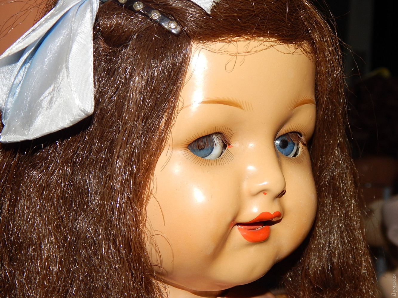 Я, заходя на выставку, сразу «споткнулся» взглядом о винтажную куклу. Ее голову «украшала» сеточка трещин. При виде таких кукол коллекционеры, знающие толк в игрушечном деле, тихо стонут: Хо-хо!