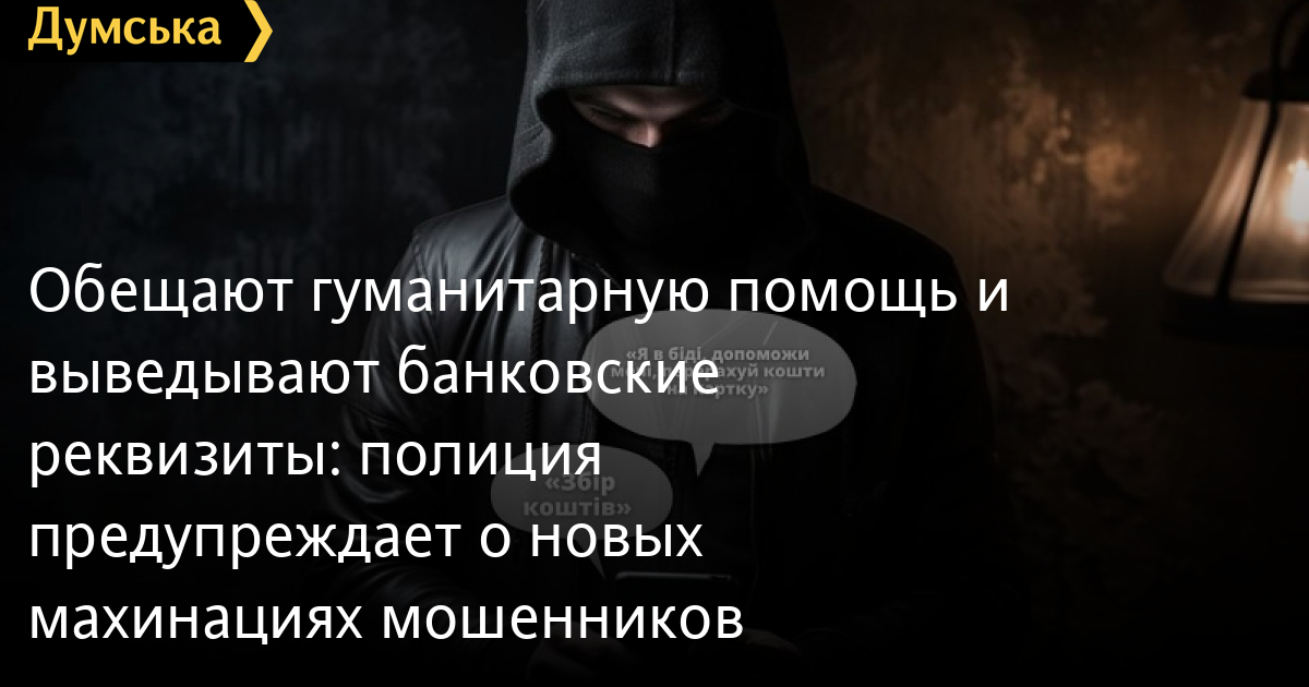 Обещают гуманитарную помощь и выведывают банковские реквизиты: полиция предупреждает о новых махинациях мошенниковВ интернете мошенники могут выдавать себя за представителей международных гуманитарных организаций, которые якобы перечисляют деньги пострадавшим от войны украинцам. В полиции сообщили, что во время такой махинации злоумышленники просят отправить им фотографии документов – паспорта и идентификационного кода, спрашивают данные банковской карты. В результате жертва может не только лишится денег со своего счета, но и «обзавестись» кредитами. Правоохранители напоминают, что выплаты пострадавшим осуществляются только через социальные службы, когда на то есть установленные причины и предоставлен список необходимых для компенсации документов. Также мошенники по-старинке продолжают рассылать сообщения от имени банков – представляясь «менеджерами», просят сообщить им секретные данные для использования счета. Заметили ошибку? Выделяйте слова с ошибкой и нажимайте control-enter Новости по этой теме: 29 июля 2025: В Усатово Одесской области произошла перестрелка: полиция работает на месте (видео, обновлено) 28 июля 2025: Пьяный на «Ягуаре» или гипертоник? Уволенный топ-чиновник одесской полиции хочет вернуться на службу 19 июня 2025: Девочку, которую искали сотни одесситов, нашли убитой: полиция работает с мужчиной, вероятно, причастным к гибели 27 мая 2025: Увели гектар у университета: на Одесчине осудили земельных аферистов, но без посадки и Хвоста |