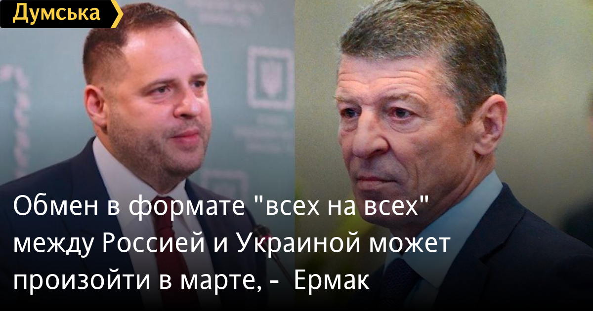 Обмен в формате «всех на всех» между Россией и Украиной может произойти в марте, — ЕрмакРуководитель Офиса президента Украины Андрей Ермак в Минске встретился с заместителем руководителя Администрации президента Российской Федерации Дмитрием Козаком. В переговорах также приняли участие представители украинской и российской делегаций Во время встречи стороны обсудили вопросы взаимного освобождения удерживаемых лиц в формате «всех на всех», о котором договорились лидеры «Нормандской четверки» во время встречи в Париже в декабре 2019 года. «Ермак сообщил о намерении провести следующий трек обмена в марте», — говорится в сообщении Офиса президента. Участники встречи отметили необходимость продолжения переговоров для полного выполнения договоренностей, достигнутых в ходе саммита в нормандской формате. СМЕРТЬ РОССИЙСКИМ ОККУПАНТАМ! Заметили ошибку? Выделяйте слова с ошибкой и нажимайте control-enter |